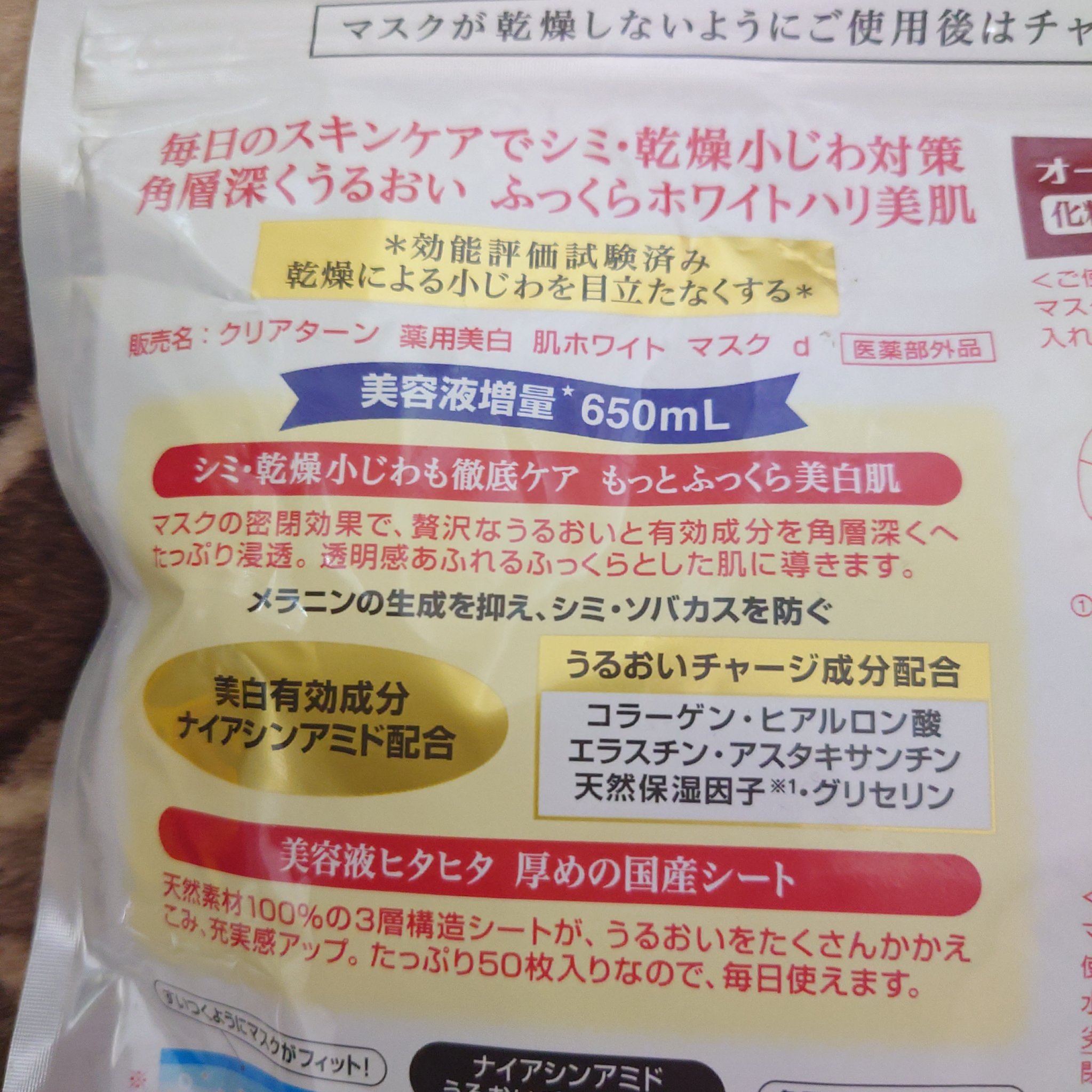 商品詳細情報クリアターン 薬用美白 肌ホワイトマスク