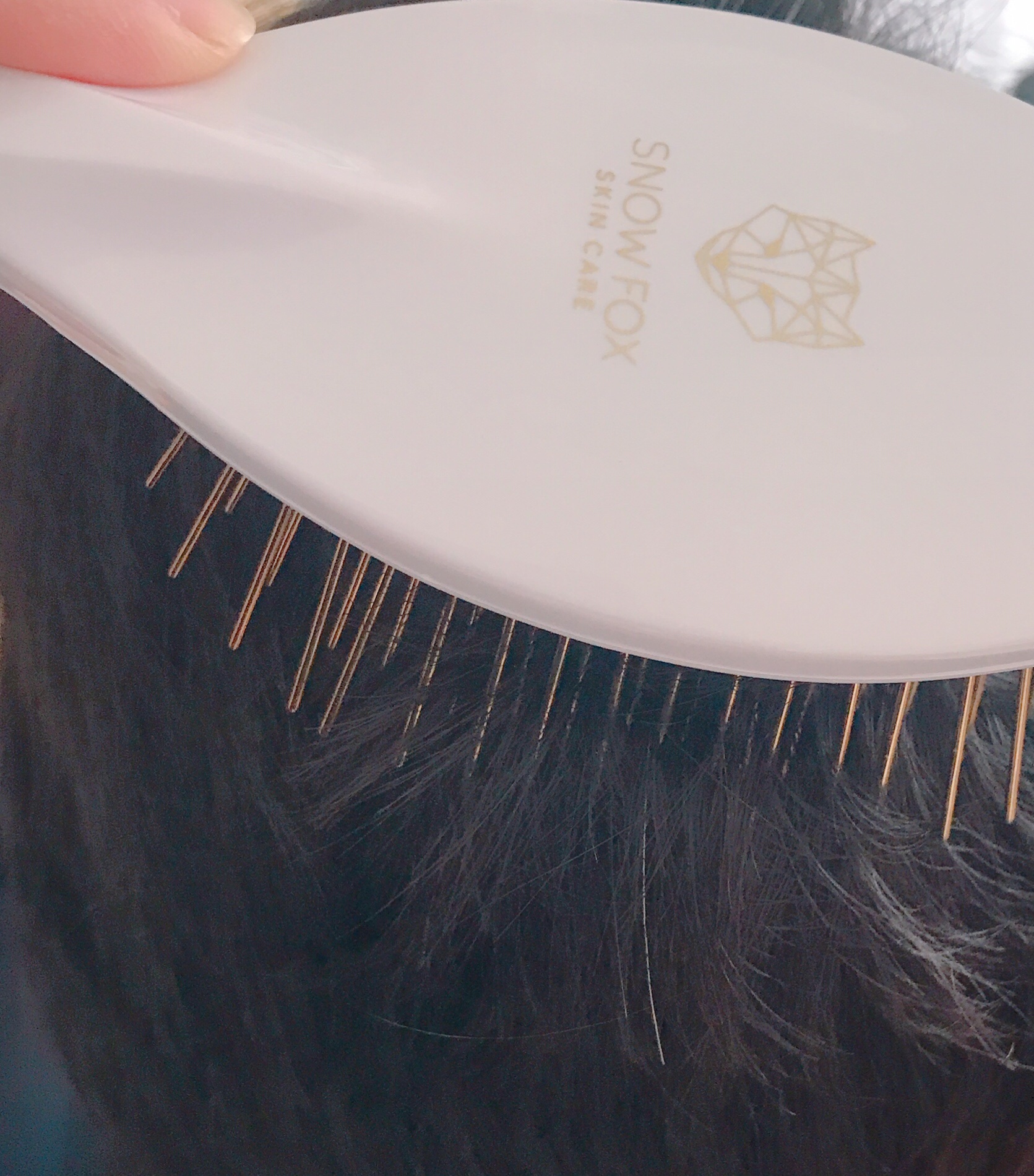 敏感肌さんも使いやすいオーストラリア生まれのスキンケアブランドSNOW FOX SKINCARE。 こちらは髪、頭皮、ボディのトータルケアができる待望の美容ブラシなんです💨 ゴールドのピン部分がひんやりして、ドライヤーで乾かした後に使うと冬でもなんだか心地よい使用感。