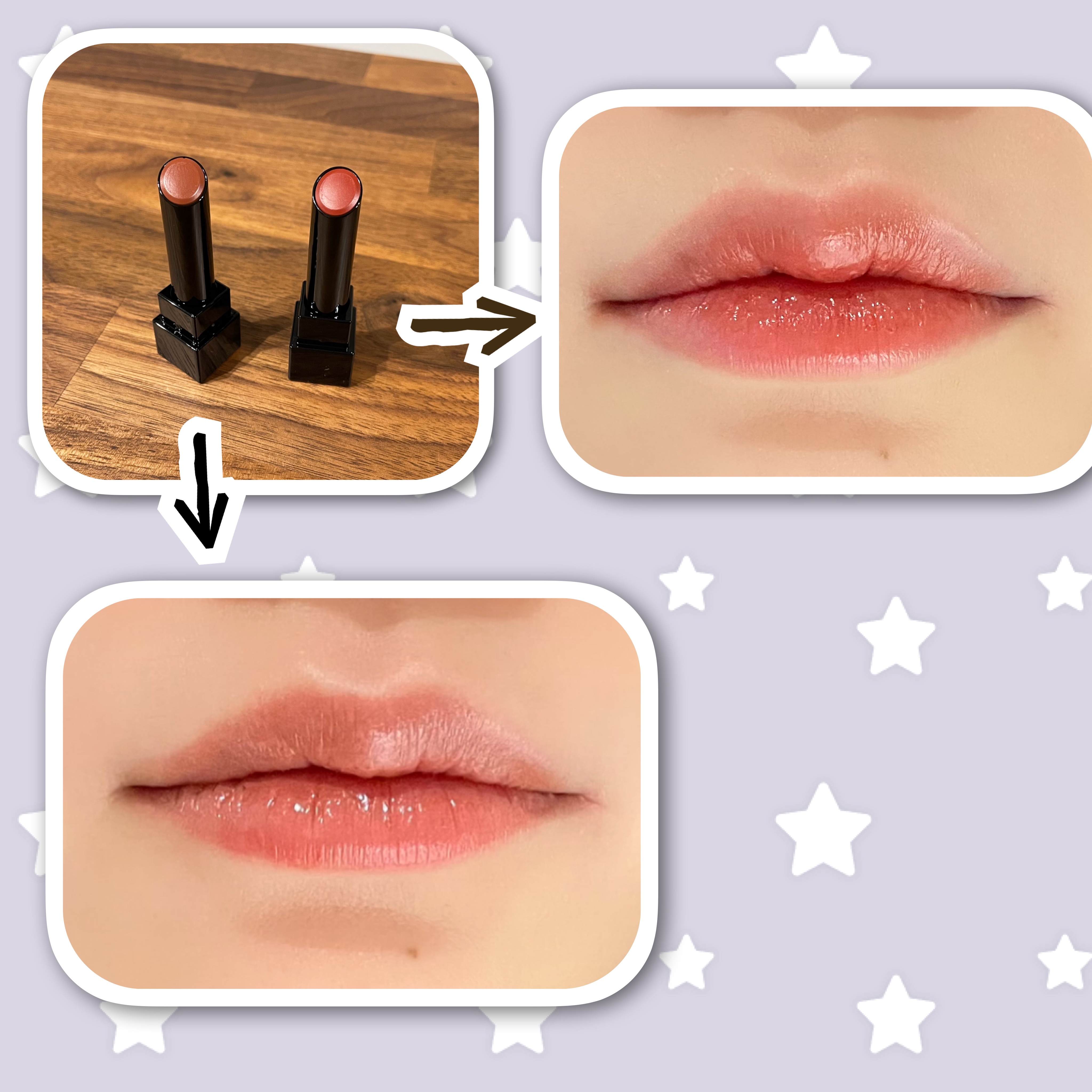 色味が可愛すぎるしツヤ感がかなり好みでした❤️ かわいすぎるので何度も使いたくなるリップです!! ちなみに塗り直しなしで1日過ごすと夕方には色味全くわからなくなるくらい落ちています。