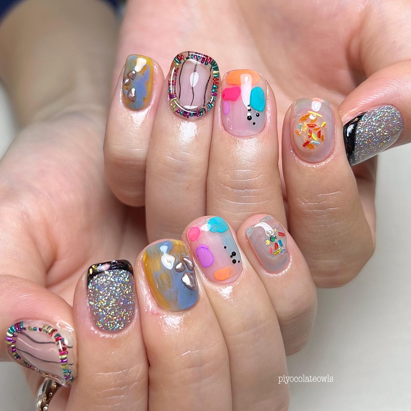 可愛いのできた🩷💜❤️💚🧡💛🩵💙🤎🩶happyValentine’sday🍫✌️カラージェル:@fiote_korea砂つぶ:@bonniebeenail#nailbook_fan#韓国ネイル#美甲#日式美甲#ポップネイル#バレンタインネイル...