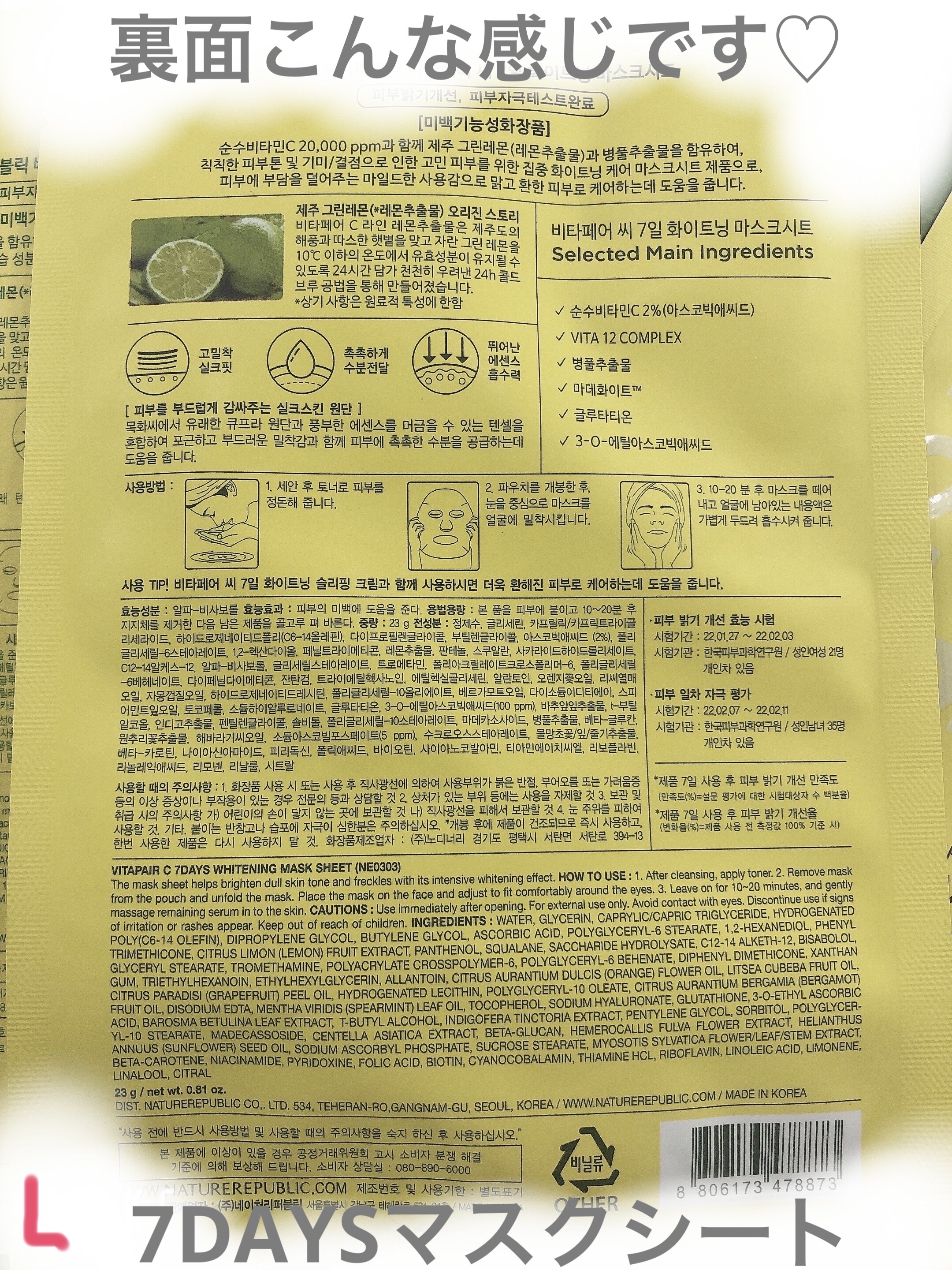 ネイチャーリパブリック ビタペアCデイリーシートマスク | 2,380円 |