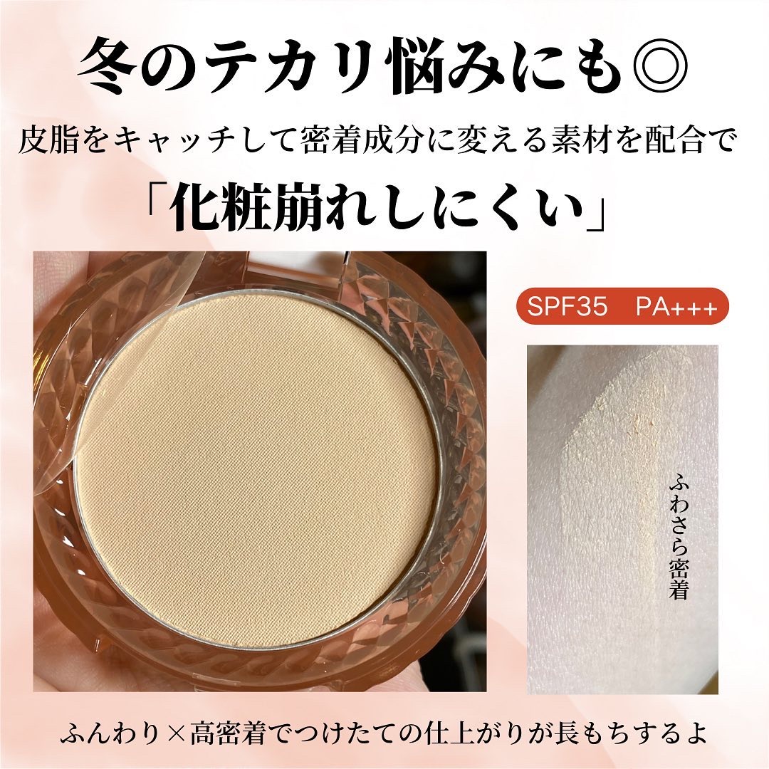 - SPF35・PA+++ ~素肌っぽいのに、毛穴レスな透明肌つづく~ パウダーなのに「塗りました感」なく毛穴を消し去る、ふんわりカバーのパウダリィファンデーションex。 「隠すよりキレイ」を叶える<エアリーブライトパウダー>を高配合することで、肌の透明感が高まり、毛穴レスなふんわり明るい肌が続きます。 ルースパウダーのように軽くて薄い使用感で、手早くつけてもムラなくキレイな仕上がりに。 また、化粧直しの際にくずれたメイクの上にパパッとそのまま重ねても、厚塗り感・ヨレ・毛穴落ちが気になりません。 <肌の明るさに合わせた選べる全2色> ・OC10 ライトオークル ・OC20 オークル ・鏡、スポンジ付き ・低刺激性 ・水あり・水なし両用タイプ