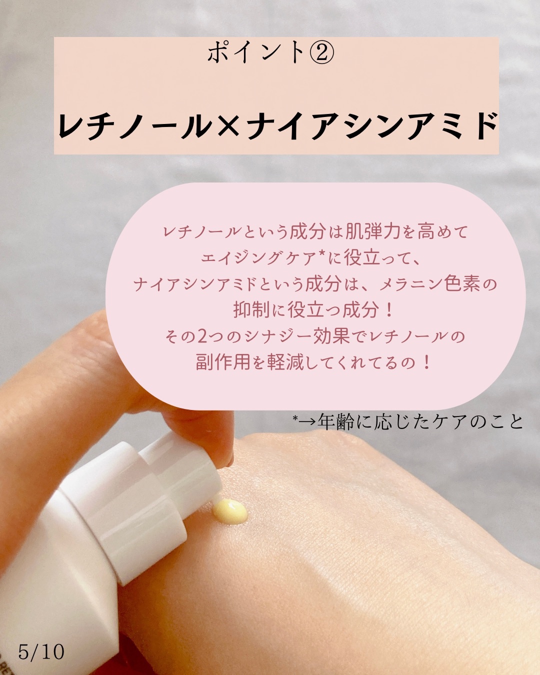 - パッケージが新たにリニューアルされた、ナイアシンアミド(*1)とレチノール(*2)配合の美容液。 毛穴や乾燥、ハリ不足などさまざまな肌悩みを幅広くケア。 *1:ツボクサエキス(保湿成分) *2:整肌成分