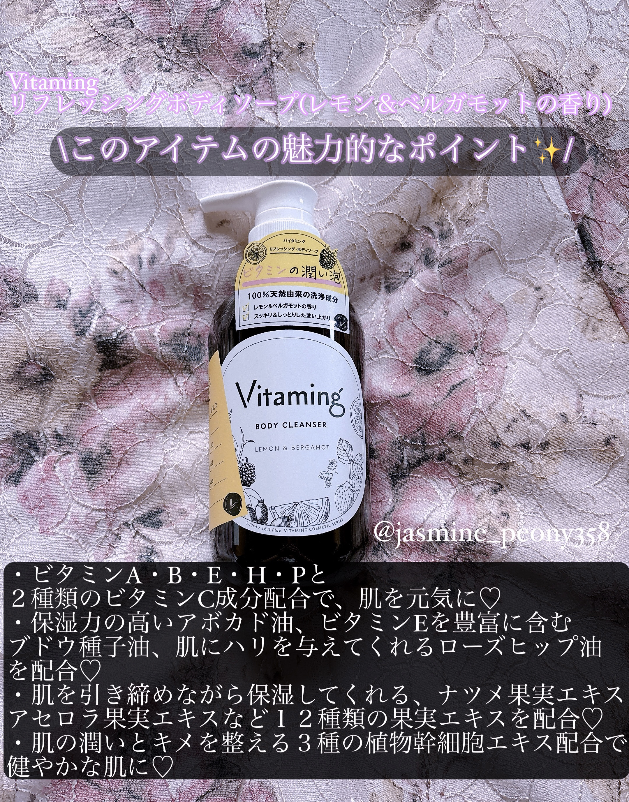 商品詳細情報Vitaming リフレッシングボディソープ(レモン&ベルガモットの香り)