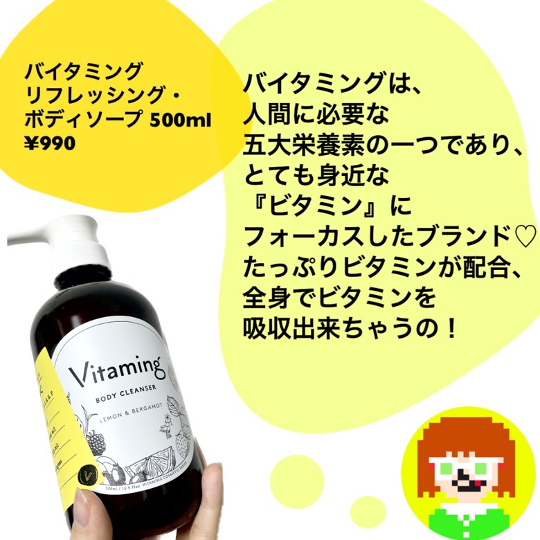 商品詳細情報Vitaming リフレッシングボディソープ(レモン&ベルガモットの香り)