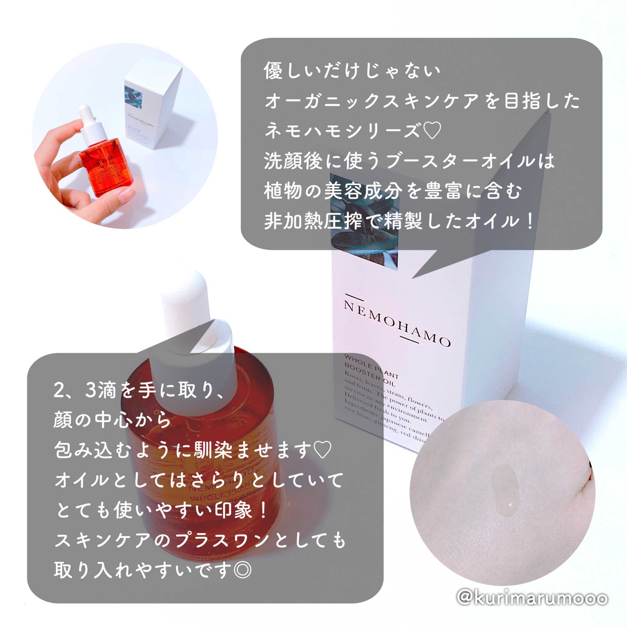 植物美容成分たっぷりNEMOHAMO ブースターオイル30mLを試してみました!¥6,380PR@nemohamoしっかりとしたコクのある質感のオイルです。オイルの上から化粧水を塗ってみましたが、「こっくり」という表現がぴったりな気がします。...