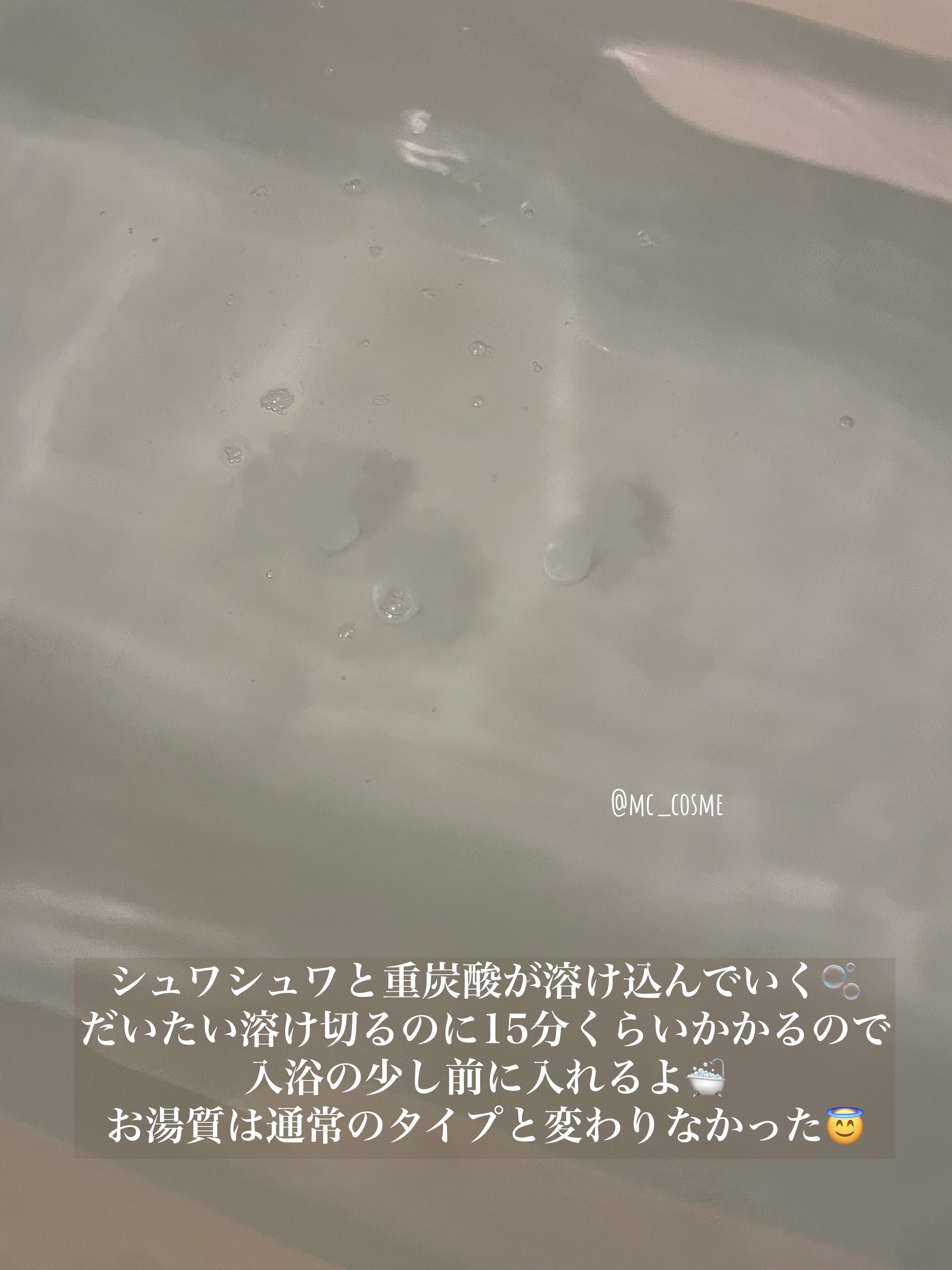 | 湯船に入れると一気に炭酸風呂へ変化しました。まろやかな美容液をまとっているかのよう♡ | 詳細を見る | |
