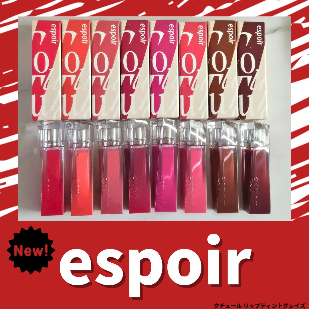 \シロップのようなツヤ膜ティント🫧/♡espoir COUTURELIPTINTGLAZE時間が経っても、きらめくシロップのようなふっくらとした厚みのあるグレイズツヤが綺麗なティントリップ🍯ひと塗りでちゅるんちゅるんのツヤ感が手に入るespo...