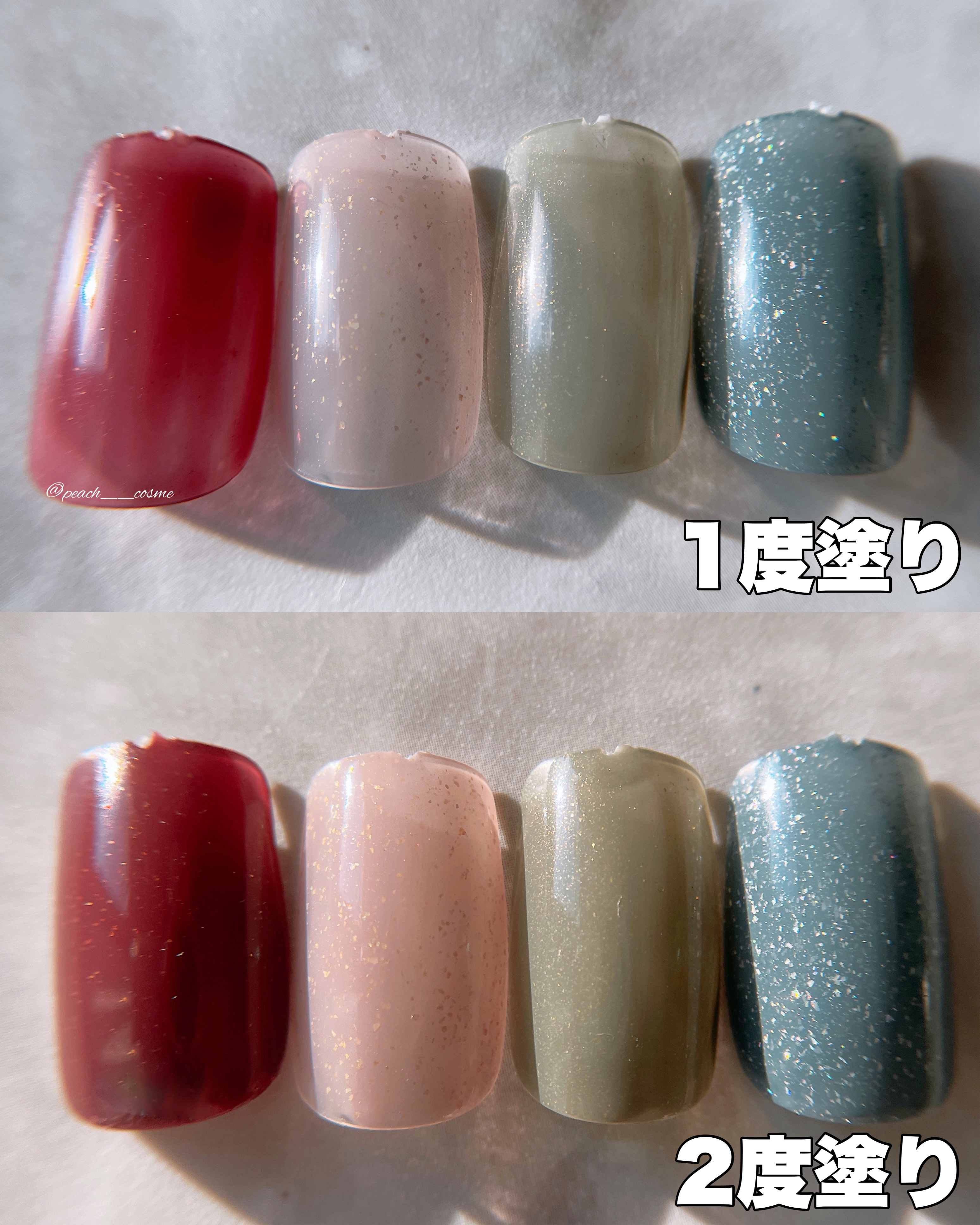 - "モチの良さ"にこだわった処方で、ベースコート無しでもしっかりと爪に密着し、 塗りたての美しさが長く続きます。なめらかな塗り心地で、ムラなく美しく塗れるテクスチャ。