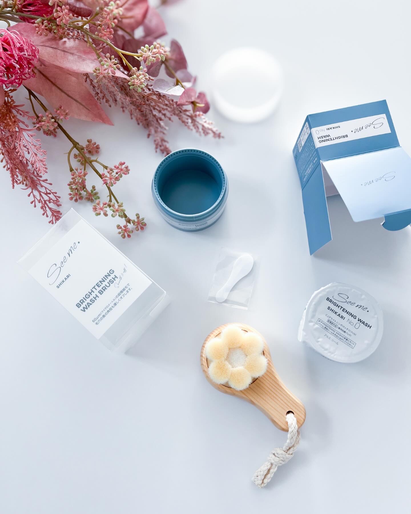 医薬部外品ブライトニング洗顔パック 天然ミネラルのシリカやグリチルリチン酸ジカリウム配合 合成着色料、香料、防腐剤フリーの無添加 生クリームのように、ねっとりとお肌に密着 10秒パック後に洗顔ブラシでくるくるして馴染ませたらOFF ふわふわの洗顔ブラシ チークブラシのようにやわらかく 毛の密度もあり肌にあてると気持ちいい✨️