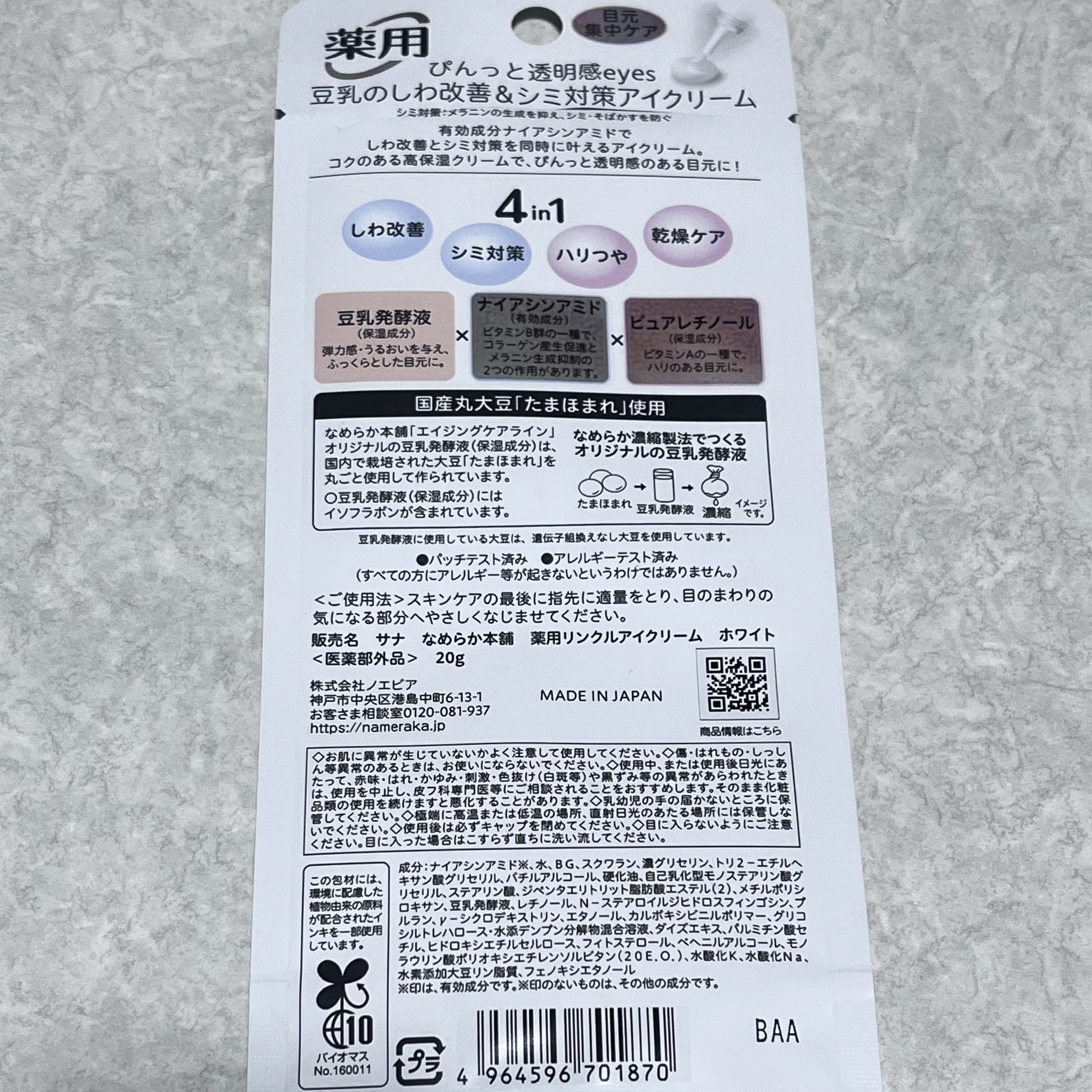 商品詳細情報なめらか本舗 薬用リンクルアイクリーム ホワイト