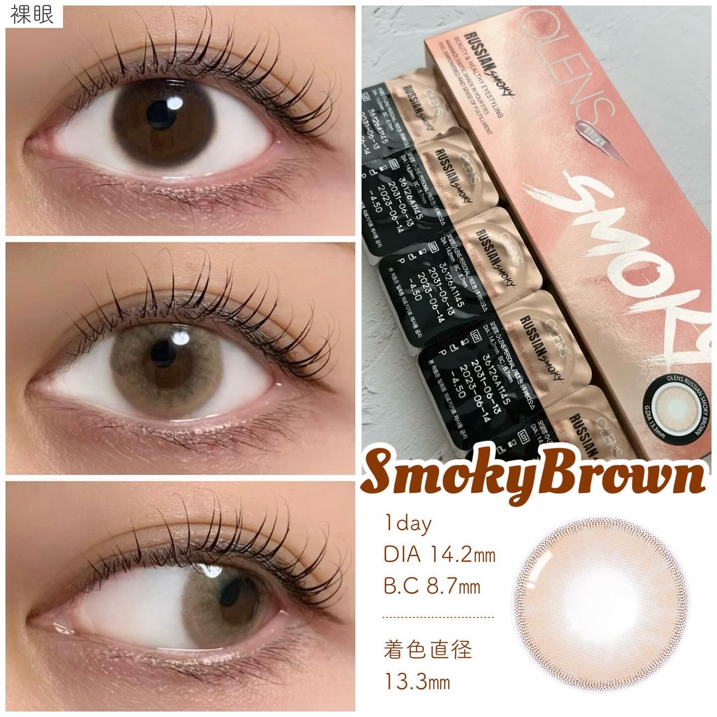 韓国No.1カラコン専門ブランド OLENS (@olens_official) のカラコンを4種比較! 明るめの虹彩カラコンで、抜け感+透明感を出してくれる淡いカラー✨ 着色直径13.3mm×フチありデザインで、ロシアンスモーキーよりもさらに目元の印象をハッキリさせてくれるデザイン!