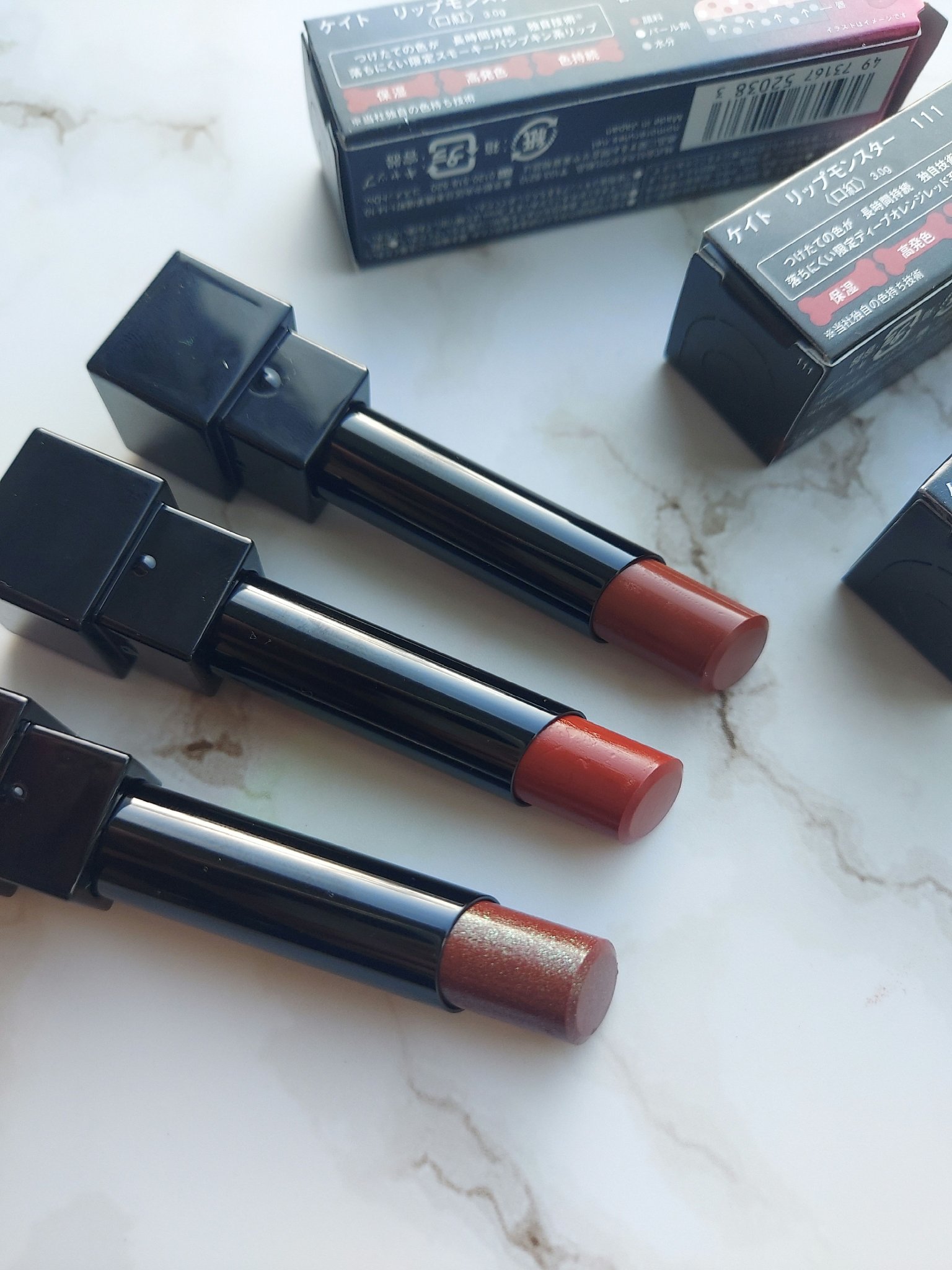 #コスメ購入品#コスメ紹介ケイトリップモンスターツヤバースEX-2悪魔の快楽限定色を購入💄手持ちの赤リップと比較してみた✎̼ちなみに私は➤➤10代の頃から赤リップが大大大好きなブルベ夏、顔タイプアクティブキュートです🍉🍒🍎#ケイト#リップモン...