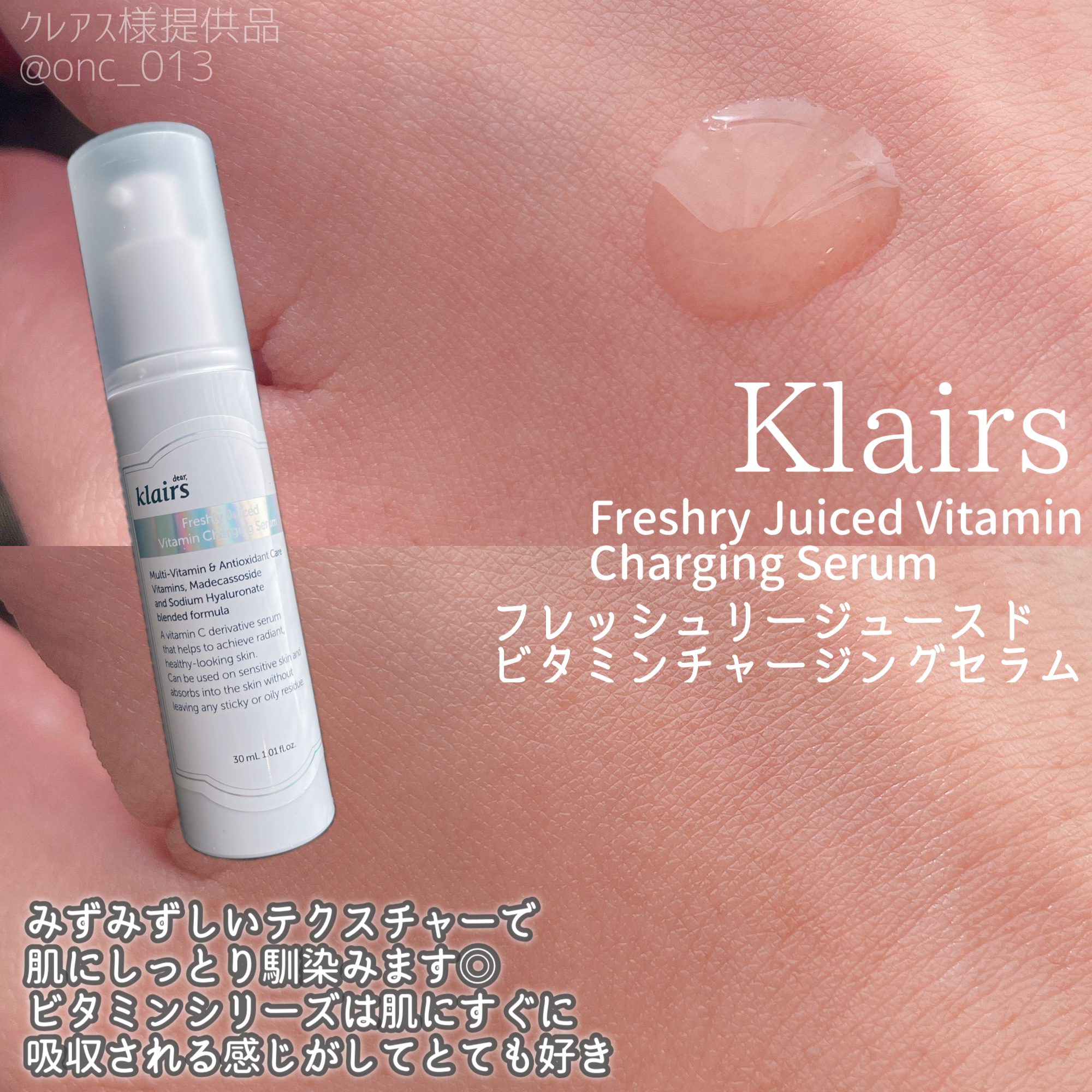 klairsꈍꈍ💠フレッシュリージュースドビタミンチャージングセラムシミやくすみ改善に期待して使いたいアイテム✧*。2週間後の改善結果を見ているとワクワクする.ᐟ.ᐟビタミンで刺激が気になったけど…健康な肌のpHに近いため肌への刺...