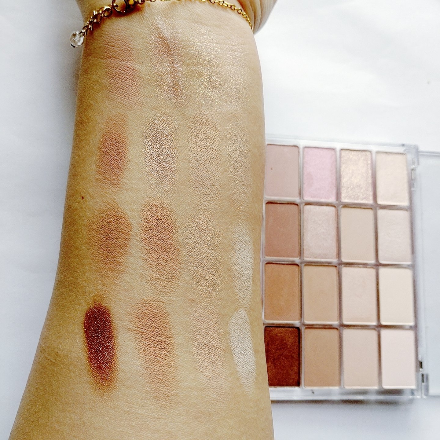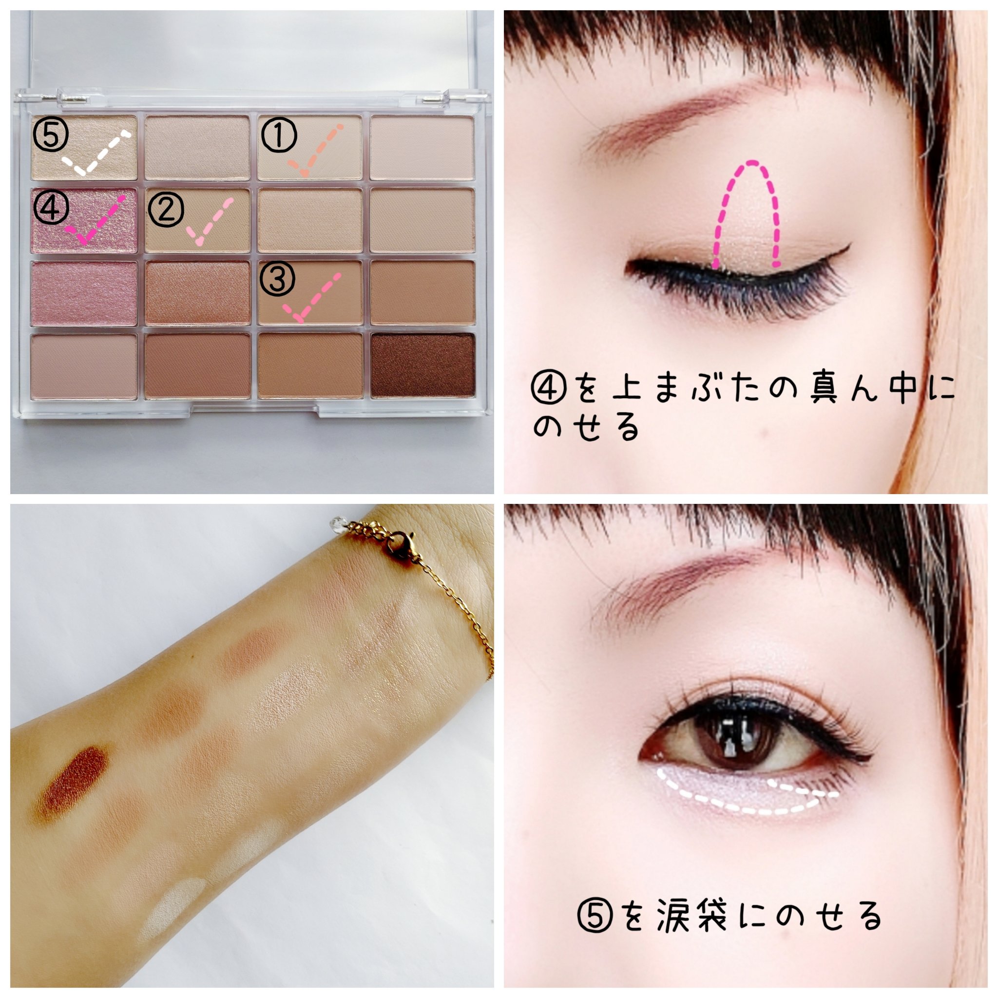 プチプラのクオリティじゃないっ!! 発売前からチェックしていたけれど、ここまで可愛いとは…😆 絶妙カラーで目もとのくすみを飛ばして*明るい印象に🩷 横割りグラデーションでメイクし、立体感をより出したかったので最後に1番左のカラーを上まぶたの真ん中と涙袋にのせています🙆 肌馴染みも良くて粉飛びも感じにくかったです💕 ブラウンの方も店頭に出てたら買おうかな💓