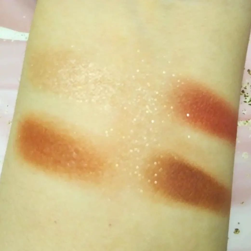 02番シャンパンベージュは… ベージュと少しオレンジを合わせたような カラーかなと思いました🤔 04番オーロラピンクは… 淡いピンクカラーがベースになっていて ゴールド、グリーン、パープルなどの 多少ラメが入っています😳✨ オーロラピンクはほぼ色味は無いので、 ラメカラーに使うのが良いと思います🤔 02番シャンパンベージュは 細かいパール?ラメカラーがおしゃれな色味で 派手すぎない仕上がりも良いなと思います😊 私は下まぶたに色味がのりにくいのですが😇 しっとり濡れツヤみたいな質感と使い心地が 下まぶたにのりやすくて乾燥もしないので気に入ってます😏