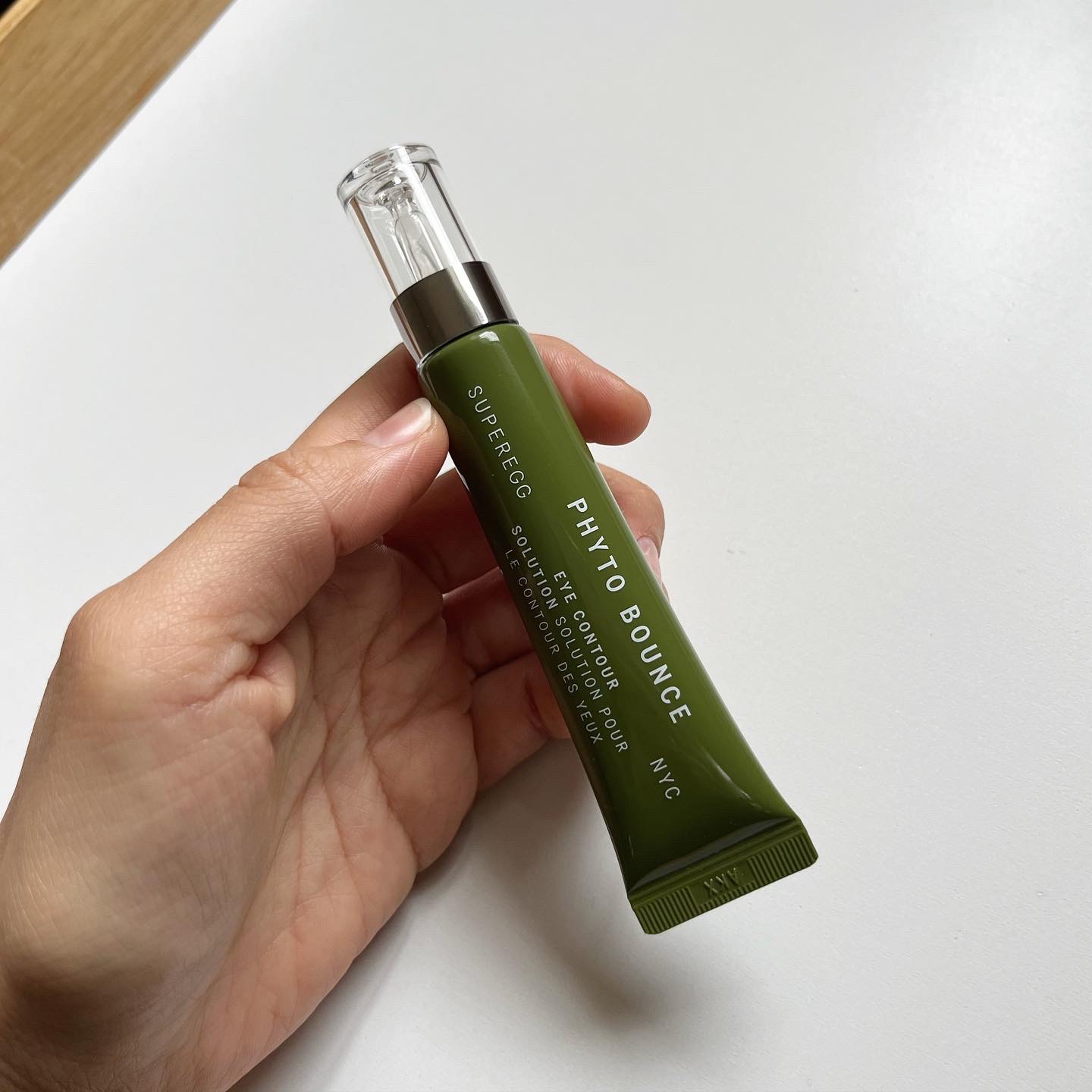 NYC発*1 100%ヴィーガンのスキンケアブランド「SUPEREGG」のクリーンビューティーアイクリーム🌿 もっちりとしたジェルで先細のノズルで目元に出しやすくて使いやすい✨少量でも良く伸びるし、気になるベタ付きもないのでメイクの前にも🙆♀️ シンプルで飽きのこないパッケージは、インテリアに自然に溶け込むのも気に入ったよ❤︎