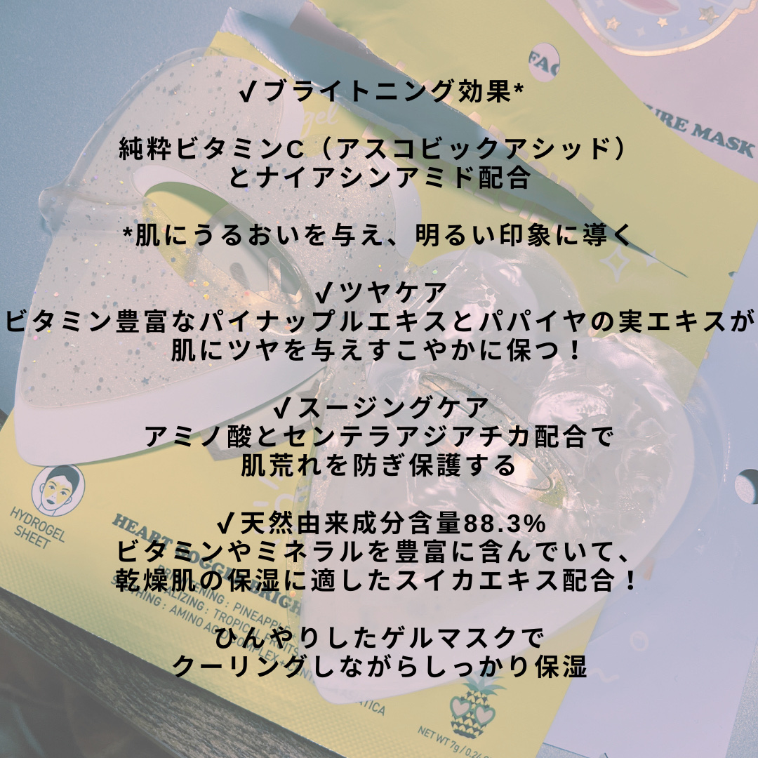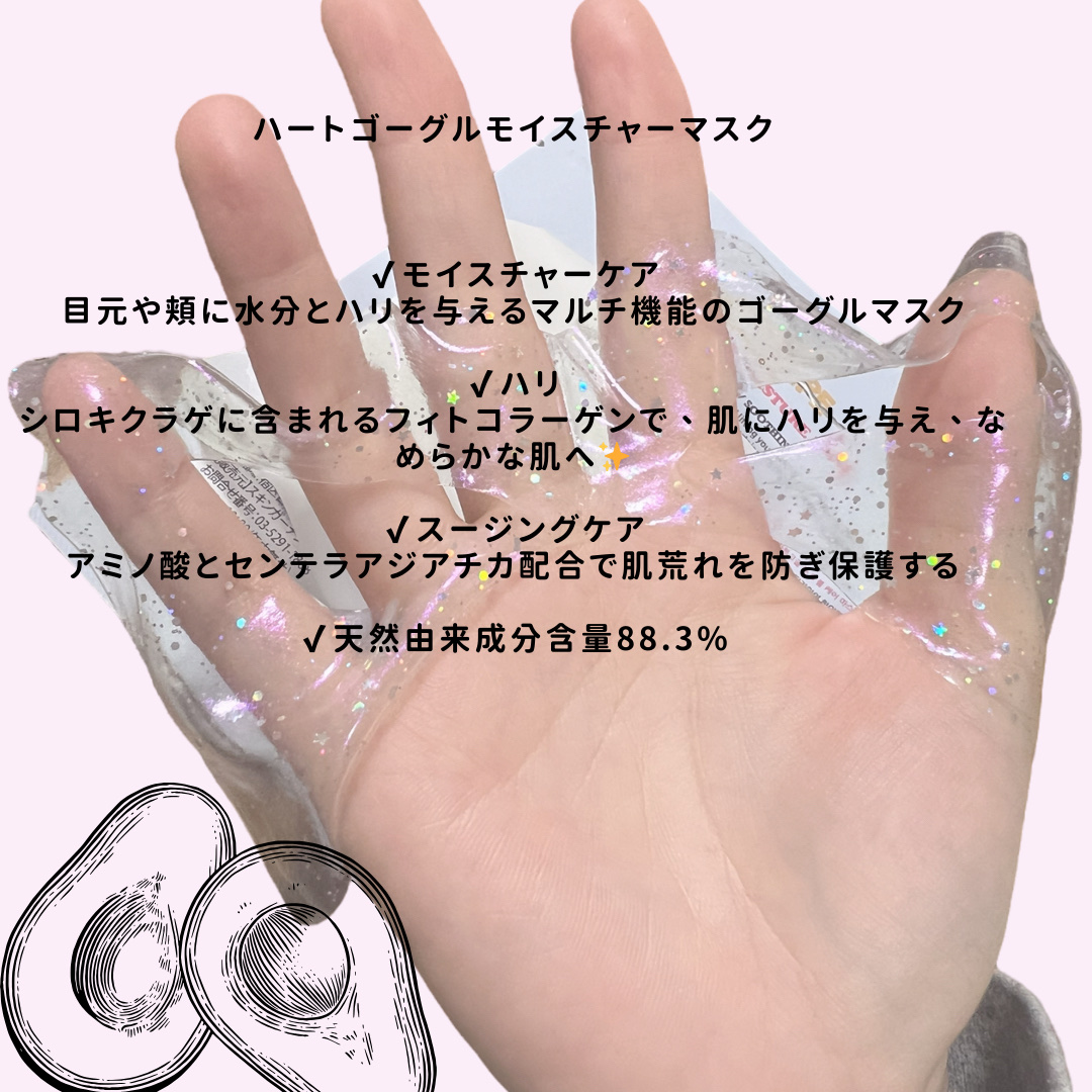 目元から頬までケアできるハートのかたちのマスク! ぷるぷるしてるハイドロゲルマスクシート💗 クーリング効果は感じられたけど保湿感は乾燥肌だから物足りなかった🥺 とにかくキラキラかわいいよね💫💫💫