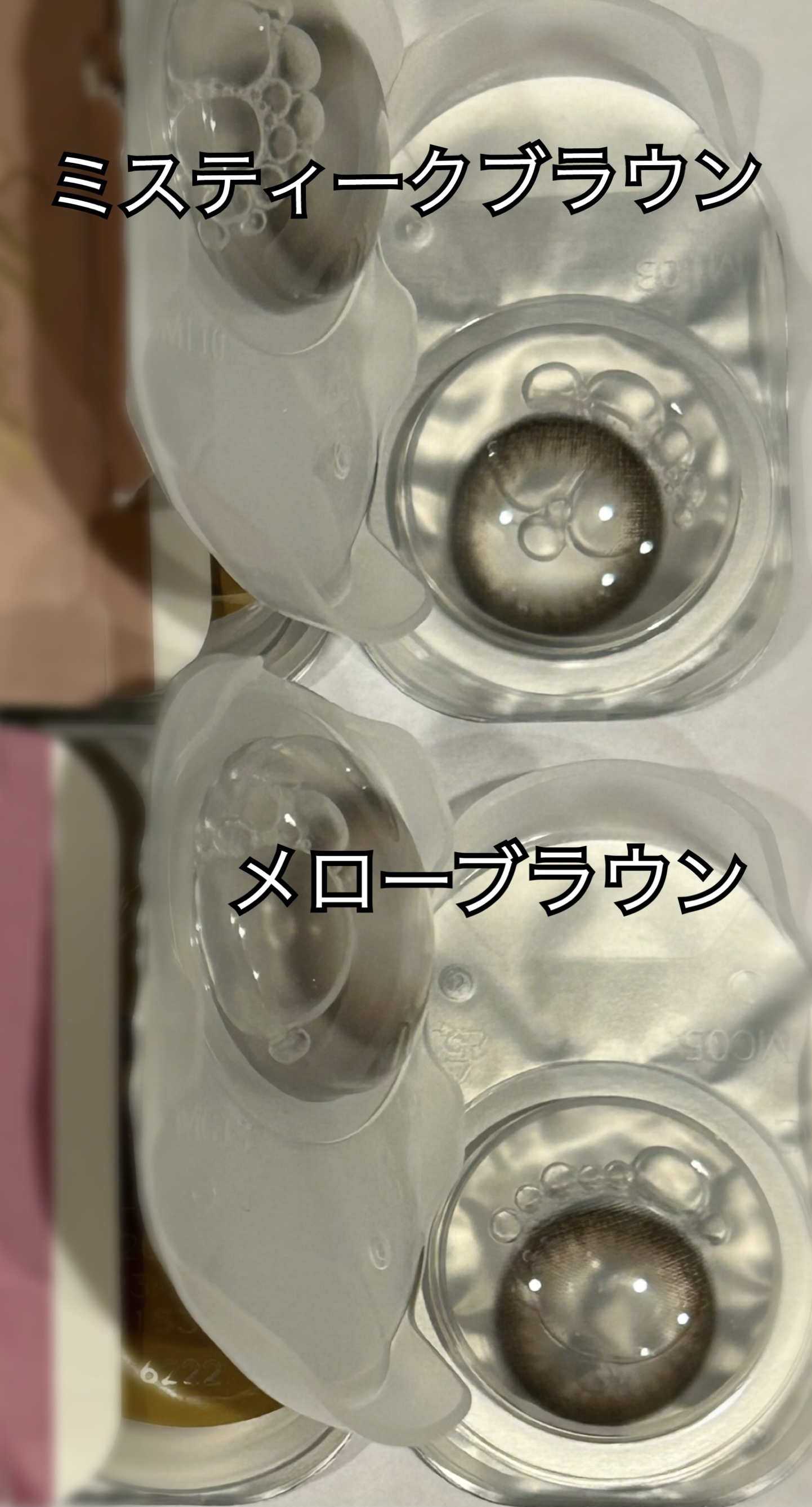 シンプルで柄なくてちゅるん!!これはいい パールベージュにかなり似てる 大きすぎず、小さすぎずで本当にパールベージュとおねだりパールの間くらい 白目透けない 大人あざとい感じ フチはおねだりぱーるより細いけど色はわかりやすい 暗めのフチでちゃんと主張してくるタイプだけどそれがかわいい、最高や 今までつけたパールベージュに似てる系カラコンの中でもかなり似てる おねだりパールからみどり感を取った感じ パールベージュの少し赤みのある感じとかバリバリに似てる これこそパールベージュの小さい版や!!!!