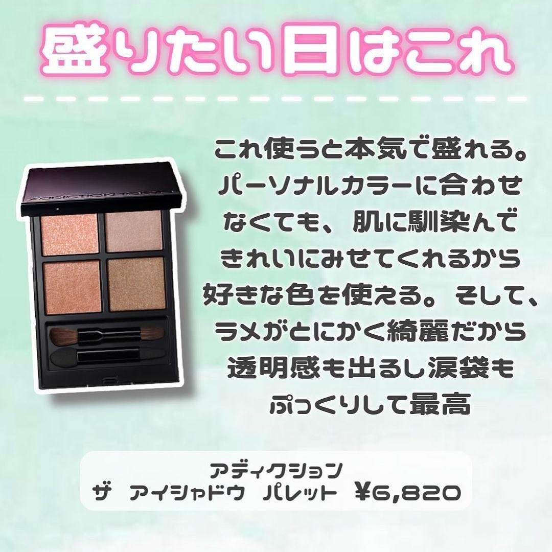 | アイシャドウパレットランキング第7位 | ラメ・パール・ツヤのバランスが天才で、まぶたにうるおいをまとったような上品なきらめき✨ | 詳細を見る | |