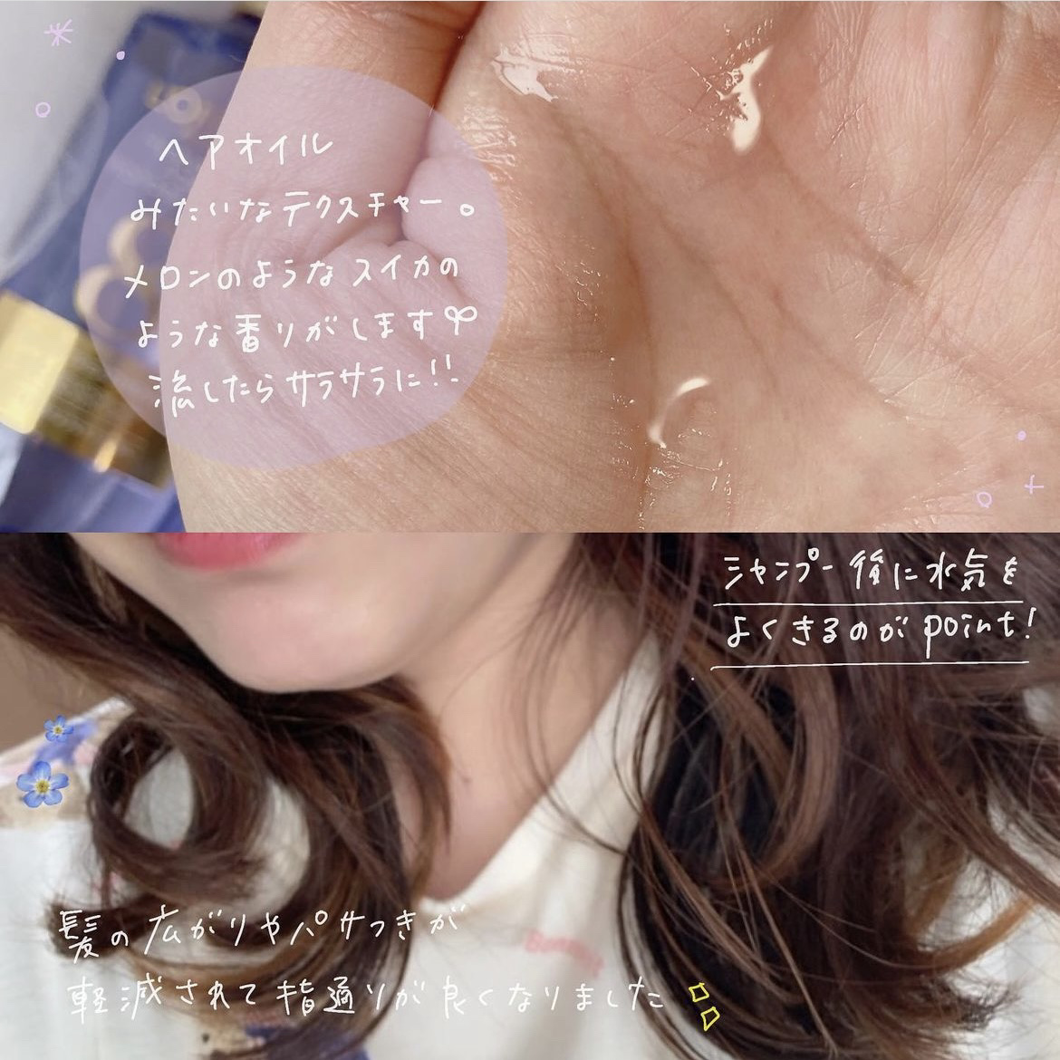 | トリートメントランキング第76位 | 洗い流した瞬間わかる 「ちゅるん!!」感。 まとまりのある髪になり 「毛量減った!??」と勘違いするくらい。 | 詳細を見る |