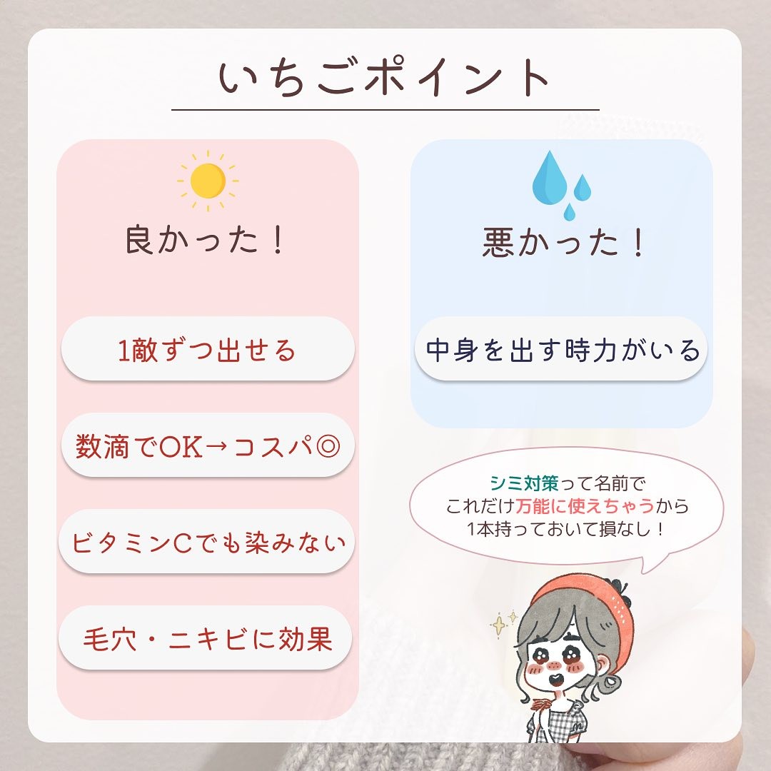 プレミアムは通常盤より少しとろみがあるように感じました。肌馴染みが良いです。 炎症を鎮めるアラントイン、殺菌効果のあるイソプロピルメチルフェノール配合。ニキビ・肌荒れ予防にもアプローチしてくれるということで、 空気が入りにくいチューブ容器を採用しているそう。1滴ずつ出るから量が調整しやすいです。