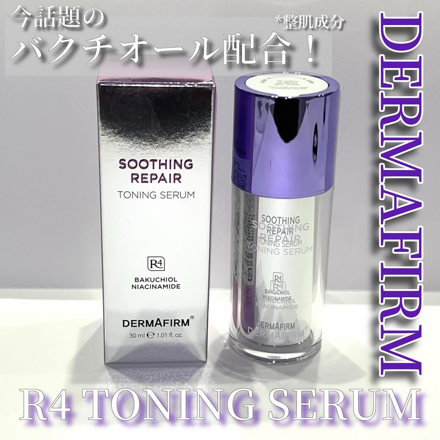 DERMAFIRM[R4]トーニングセラム次世代レチノールと言われるバクチオール*、ナイアシンアミド*さらに話題の「グルタチオン*」を配合したマルチケア美容液✨*全て整肌成分アズレンリポソームと、肌荒れ防止・うるおいケアに優れた植物由来エクソ...