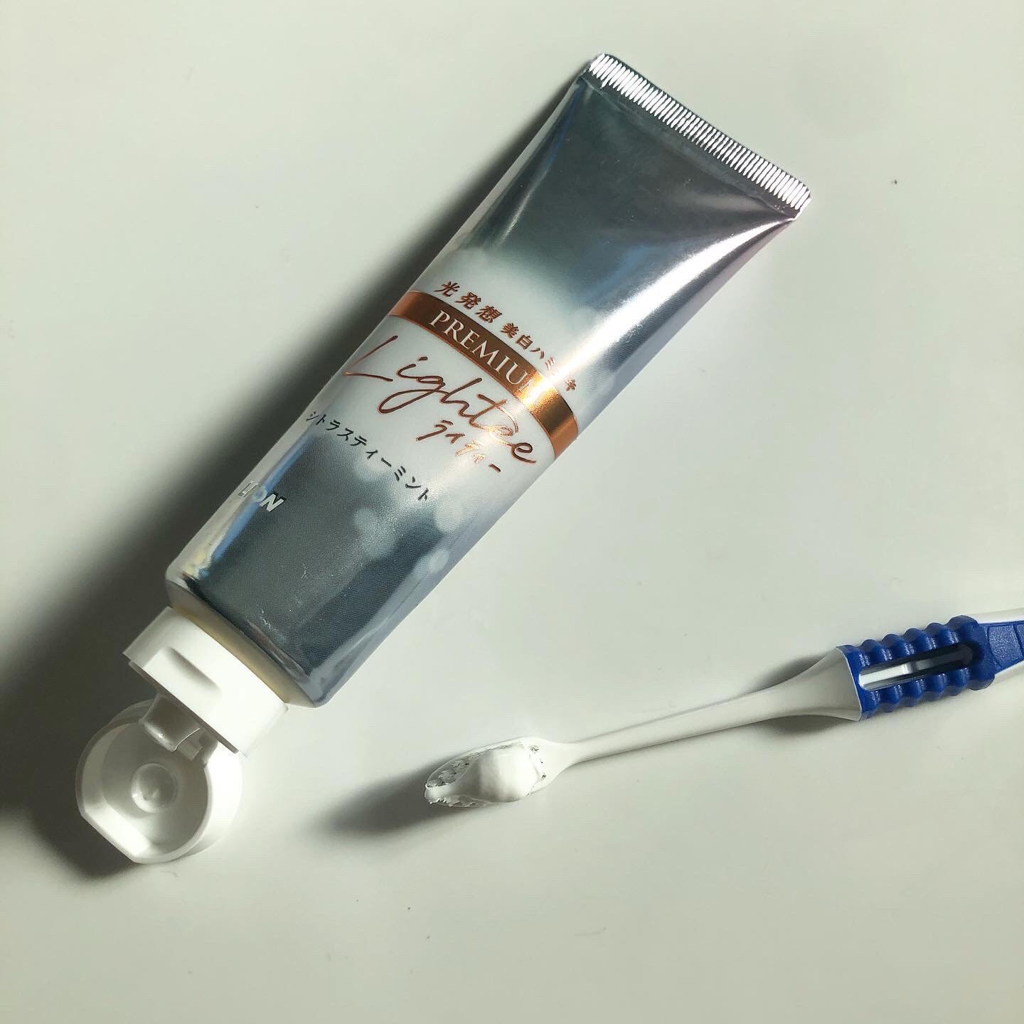 ちょっとコロナで、家族と同じハミガキ粉使うの憚れるから、とっておきの#高級歯磨き粉おろしてきた #ライオン #ライティー#光発想美白ハミガキ#lighteeハミガキpremium味はシトラスティーミント ミント結構スースー強め 痛いんじゃなく...