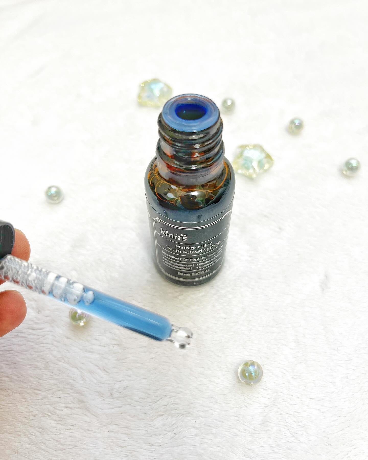 青い美容液&クリーム!!Klairsミッドナイトブルーユースアクティベーティングドロップ🌸ミッドナイトブルーカーミングクリーム青いのは着色料ではなく、植物成分の天然原料グアイアズレンが含まれているから💡グアイアズレンとは、炎症を抑える医薬品に...