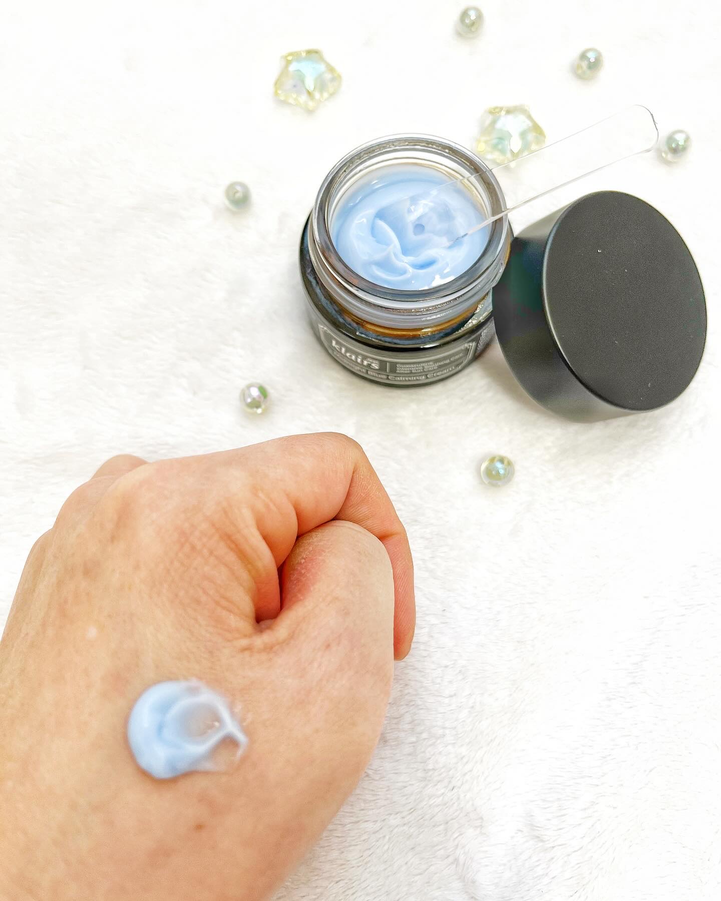 | 植物成分のグアイアズレンの色の綺麗な青色のクリーム。敏感な肌が感じる多様な刺激をケア | 詳細を見る | |