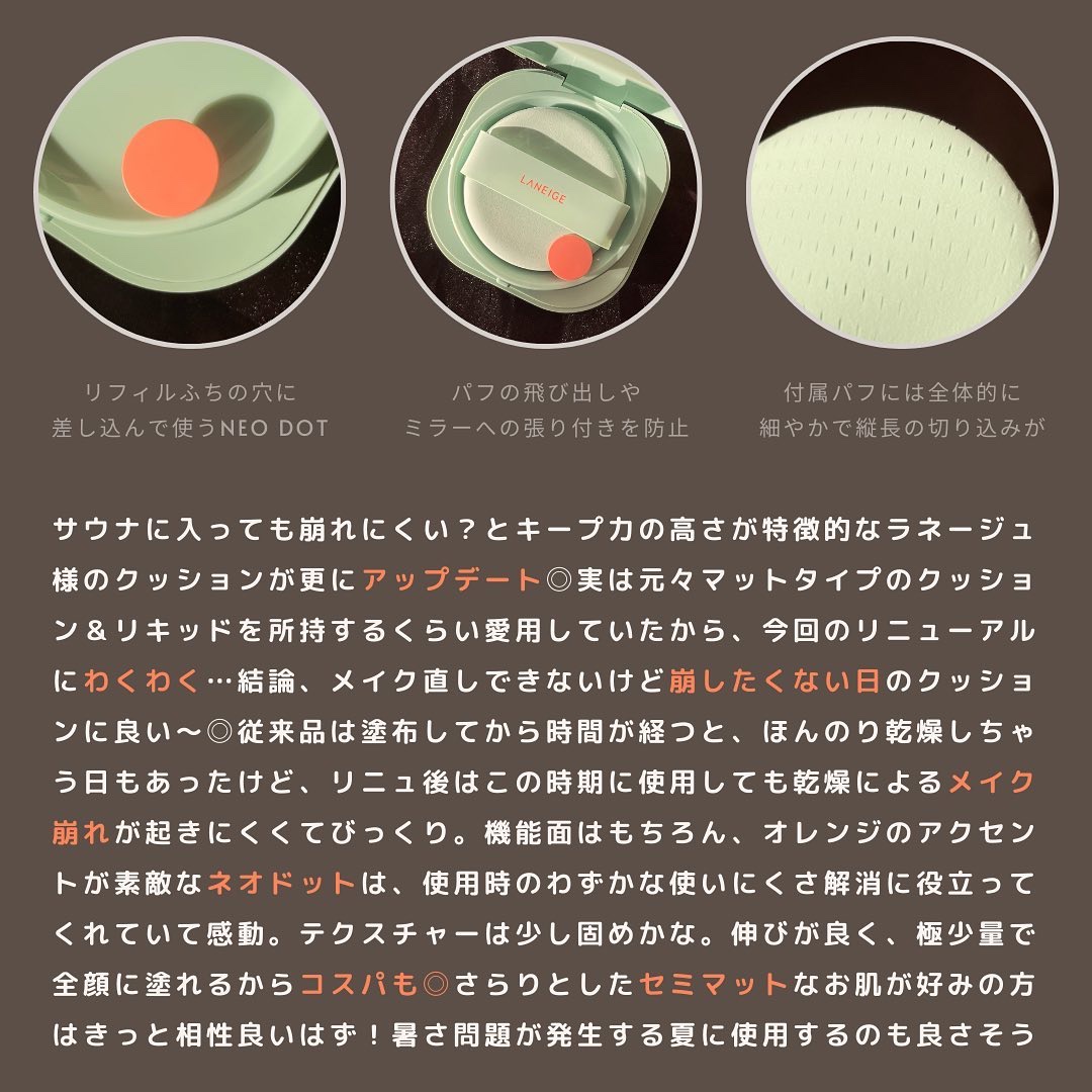 大好きでずっと愛用してるLANEIGEのクッション🪞♡ リニューアル後のネオクッションはさらに良い…! コンシーラー要らずのハイカバーなのに厚塗り感のない綺麗なセミマット肌に仕上がるからマスクメイクにもぴったり🫶🏻🫧 フォローすると、今買うべきコスメがわかるよ💎