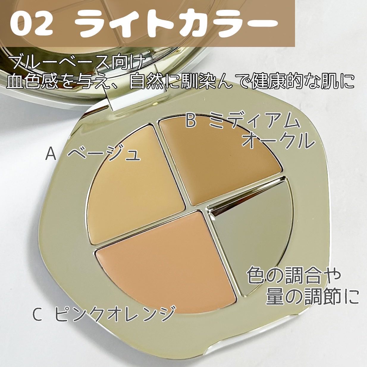 - 様々な肌悩みにアプローチして開発された三色一体型コンシーラーパレット。 3つのカラー、2つのテクスチャーがお悩み別にアプローチ、シームレスな美しい肌に仕上げる。パレットのカラーはクールトーンとウォームトーンを兼ね備えているため、メイク初心者の方でも色選びに悩まずにメイク可能。 さらに、右下部分に斜めのパレットが設計、パレットで3つのカラーを調合して使うことで自分好みの色を調合することができ、様々なお悩みを解決。