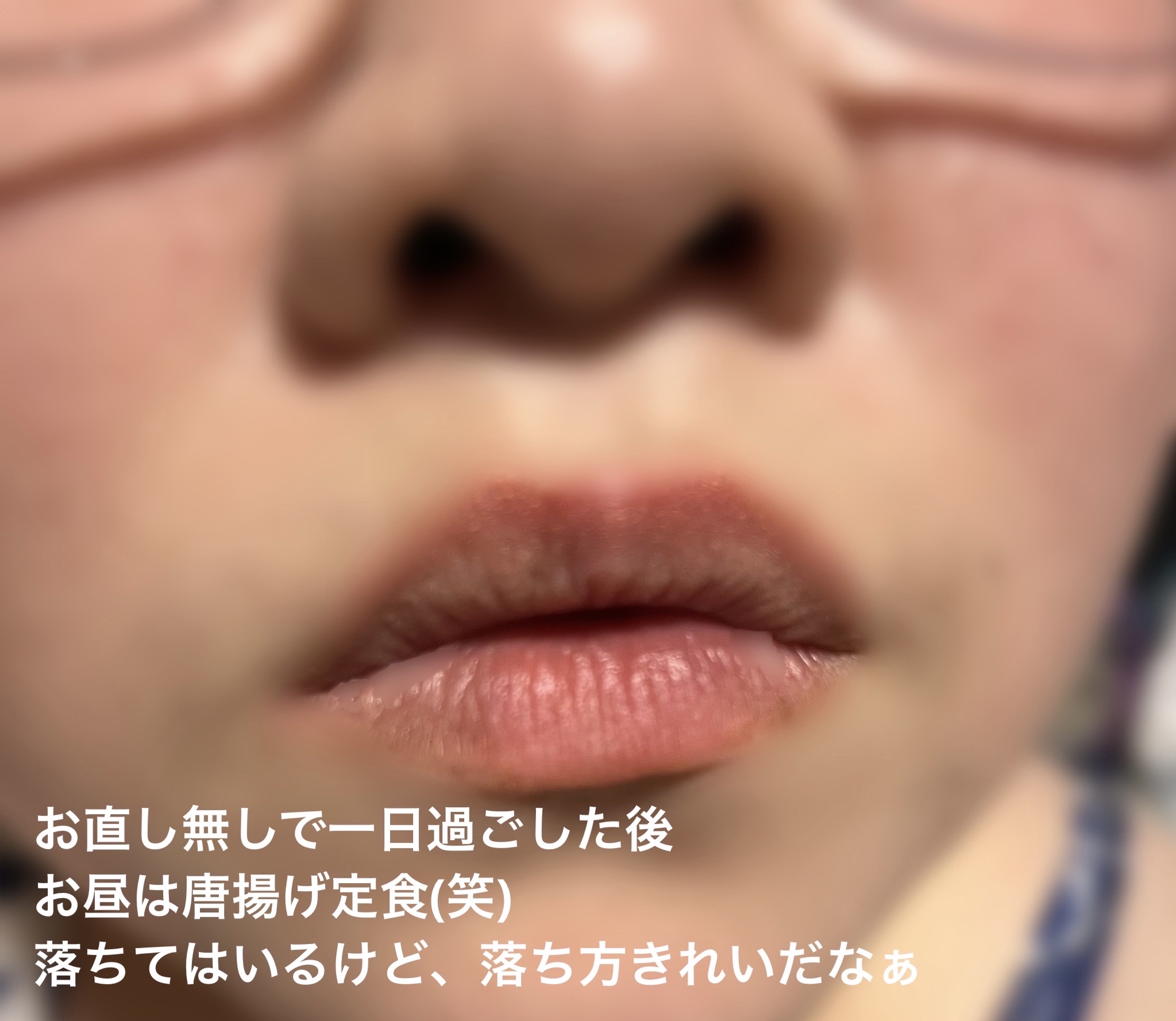 【色がほどよい!】 薄すぎず濃すぎず、濃くしたかったら塗り重ねればいい、とても調整しやすいカラーでした。 【ニオイがほぼしない!】 あんまりニオイが強いと口の中が気持ち悪くなる私でも、難なく使えました! 【マスクにつかない!】 ロフトで買ってすぐお手洗いに駆け込んでお試し、その後マスクをつけて2時間ほどうろうろして帰宅。私のマスクには全く色がついてませんでした…感動…。 【プチプラ!】 第二のリップモンスターという噂がありますが、リップモンスターよりちょこっと安いというお手頃価格も魅力のひとつかなと。リップスティック型よりもリキッドでチップ型がいいそこのあなた!おすすめします! 【ちょっと乾燥する】←上から保湿系のグロスで解決! 【色が落ちにくい】←むしろ良い点?(笑) 【全体的に色味が明るい】←今後の色展開に期待! 【ジェル膜の?油っぽい香りが微かに】 【販売店が少ない】←だいぶ増えたんだろうとは思うけど…(笑)