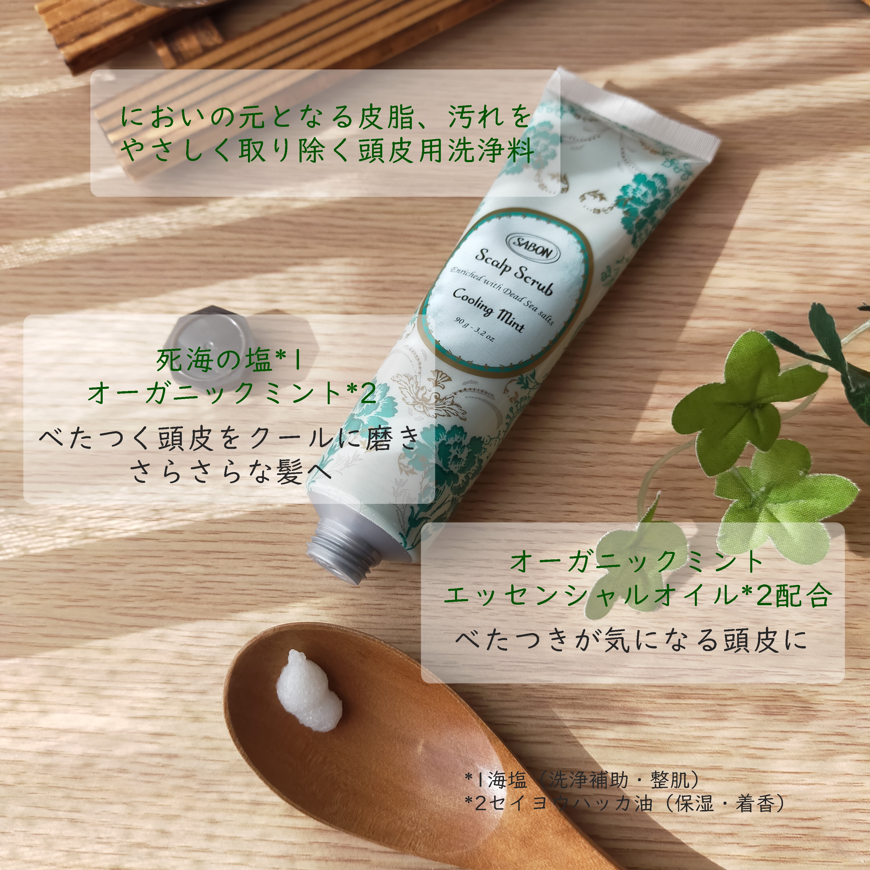 ミネラル豊富な死海の塩によるディープクレンジング効果で、毛穴の汚れや詰まりを取り除きながら頭皮を健やかに整えます。 頭皮を心地よく刺激するジェラート状のテクスチャーと、すっきりとした洗い上がりがやみつきに! オーガニックミント エッセンシャルオイル配合の『リフレッシング』は、清涼感あふれるミントの香り。