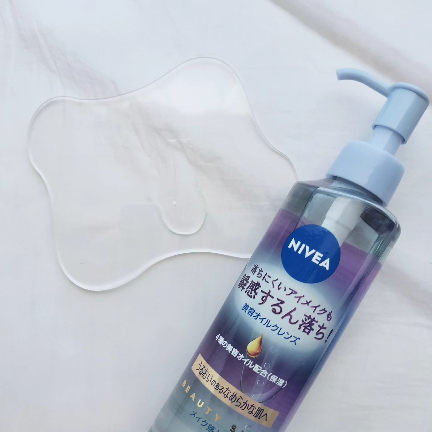.ニベアクレンジングオイルビューティースキン195mlしっかりメイクや毛穴汚れもすっきりオフするクレンジングオイル。4種の美容オイル※配合。洗うたびうるおったなめらかな肌に導いてくれるそうです。手早くクレンジングができました。オイルはさらりと...