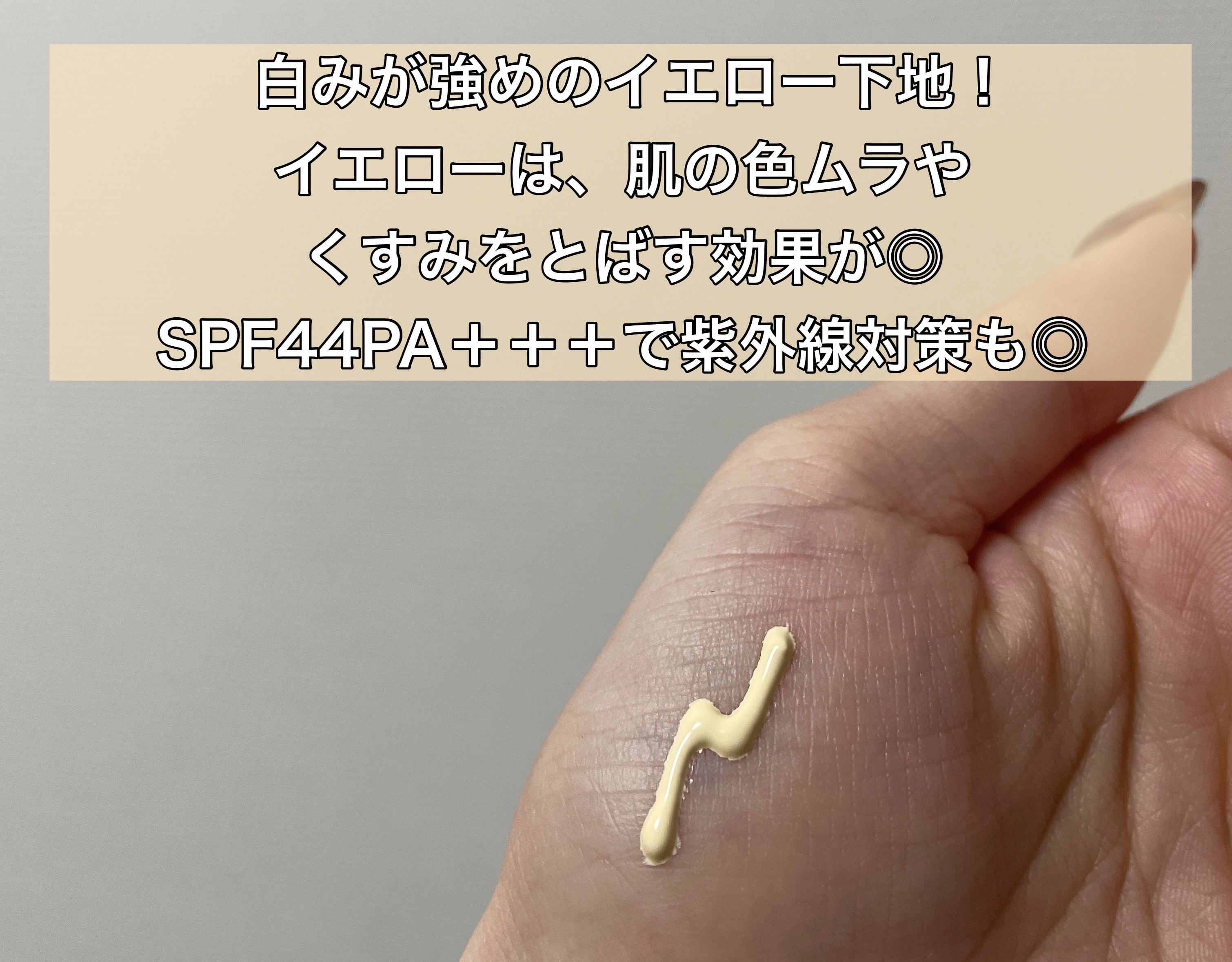 ファンデ要らずの圧倒的補正力! ✔️SPF44 +++ ✔️紫外線吸収剤不使用 ✔️3種の美容液成分配合 カバー力はかなり高く、赤みや色むらを均一に整えて肌を綺麗にトーンアップしてくれます◎ セミマットで少しさらっとした仕上がりです ナチュラルで薄づき、というよりはしっかりメイクをしている感が出やすいです