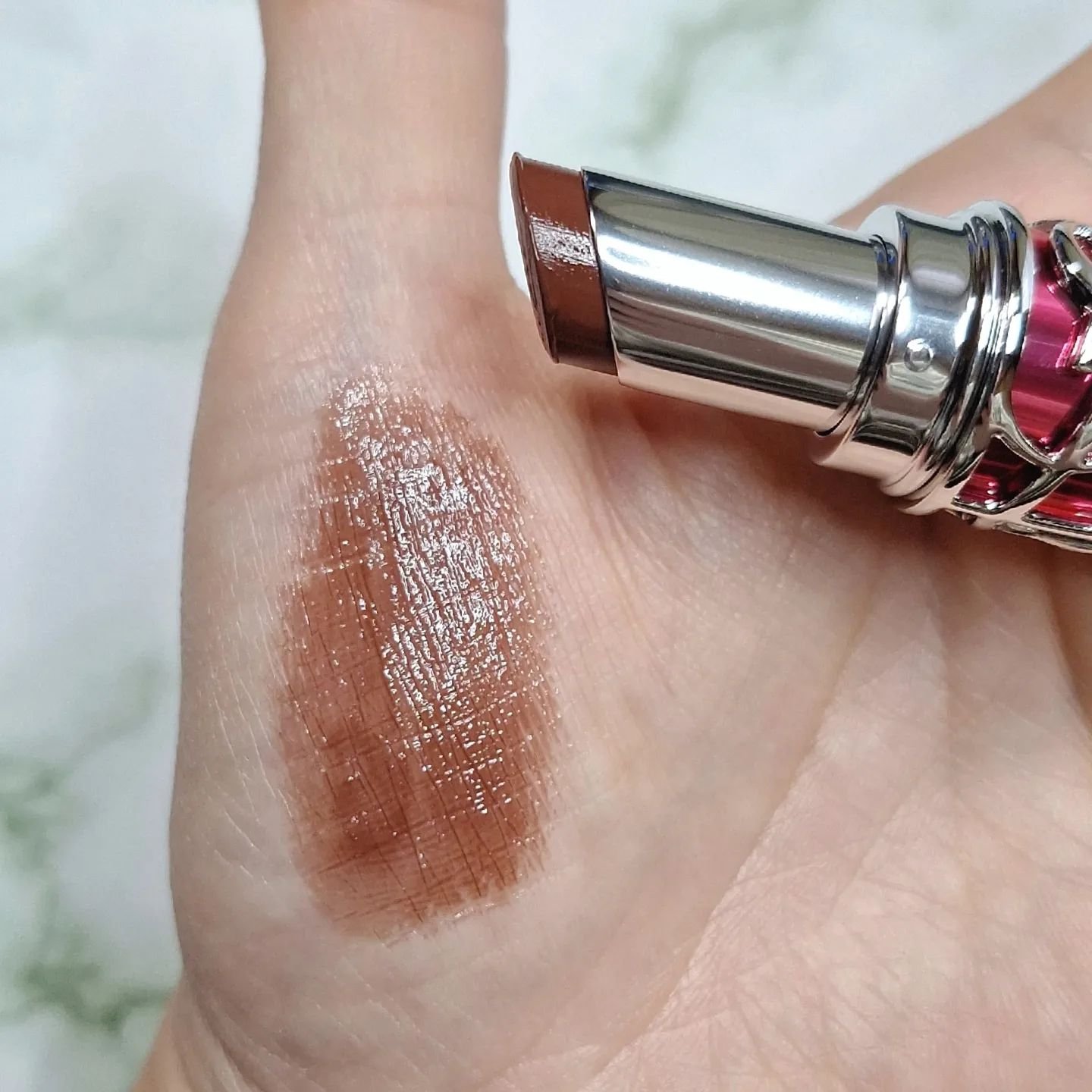 YSLホリデー🎄上品なきらめきを宿したロージーピンク唇にすっと溶け込む絶妙なローズトーンが肌の透明感を引き出しながらふんわりと血色感をプラス微細なゴールドとピンクのラメが光を柔らかく反射し、動くたびに上品なツヤと立体感を演出💫⭐︎YVESSA...