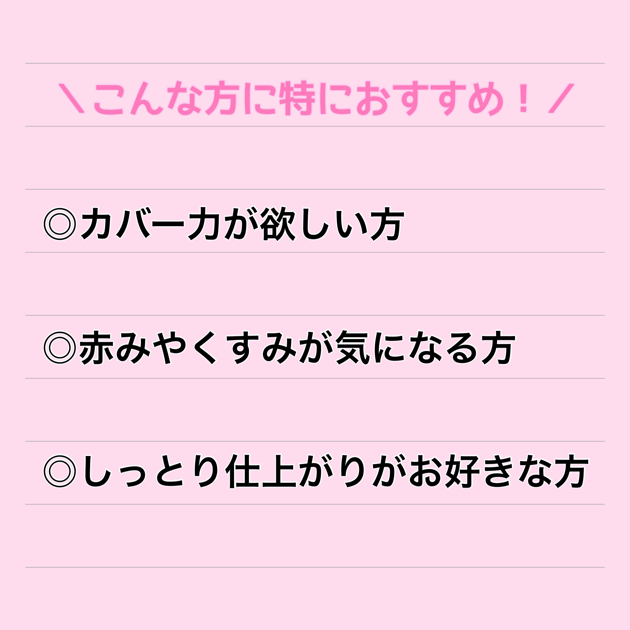 私は乾燥肌なので下地によっては日中カサつきが気になるのですが、この下地は1日乾燥せずにしっとりと使えました😍 保湿力が高い所は凄く推しポイント👏🏻ですが、塗った後に特に乾燥が気になる部分は少しムラが出来てしまいました、、、 なので乾燥が気になる方はスキンケアや日焼け止めの後の保湿がしっかりされてるお肌にのせるのが◎ カバー力はそこまでないのでナチュラルベースメイクがお好みの方にもおすすめです😊