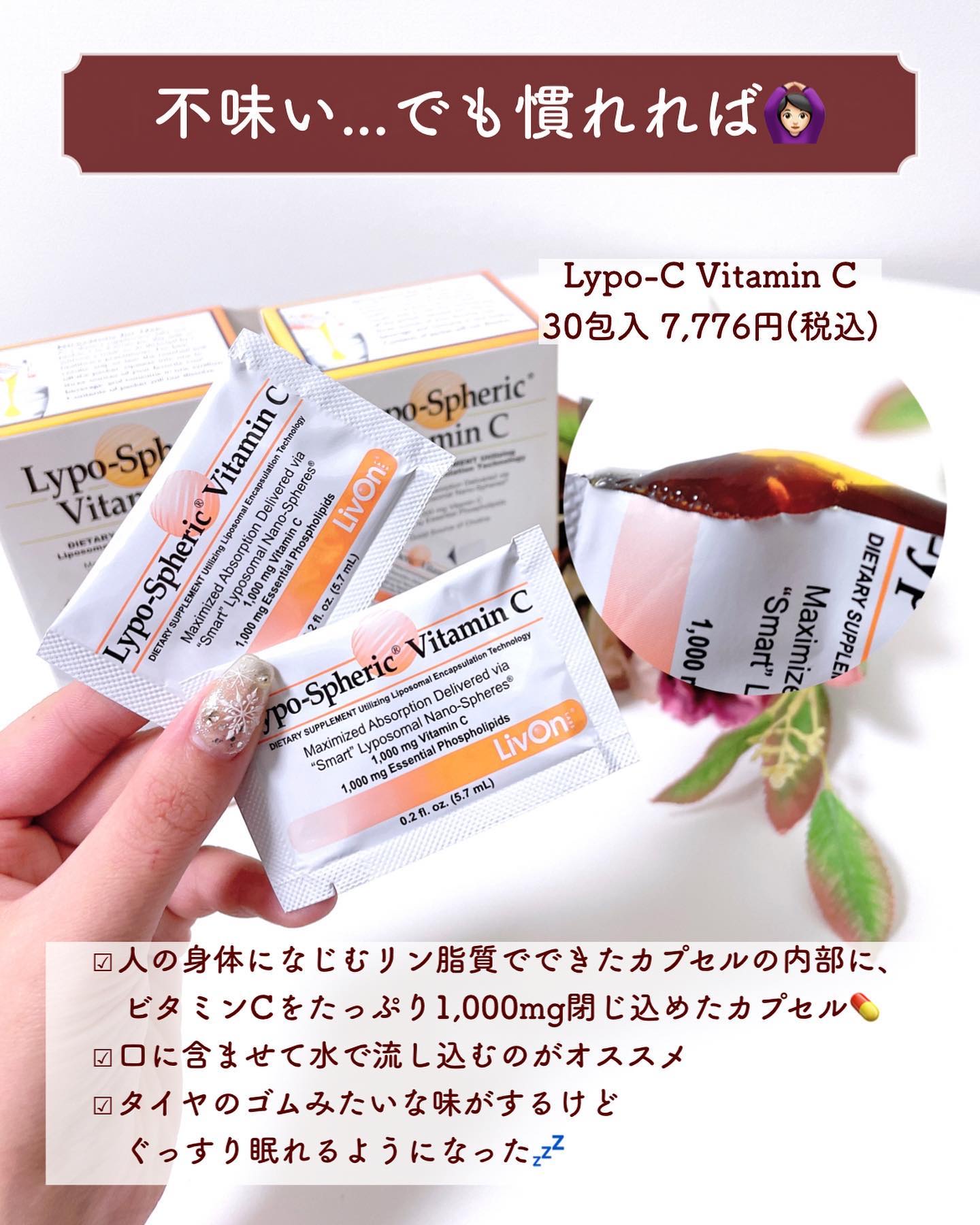 高品質リポソームビタミンCを100%使用した リポスフェリックビタミンC🍋 1包にビタミンCが1,000mg 飲まない数年の間に少しは飲みやすくなったのかと思いきやそういうこともなく相変わらず飲みにくい💦 かなりビタミンCの効果を感じます肌はもちろん、身体も元気にもなります