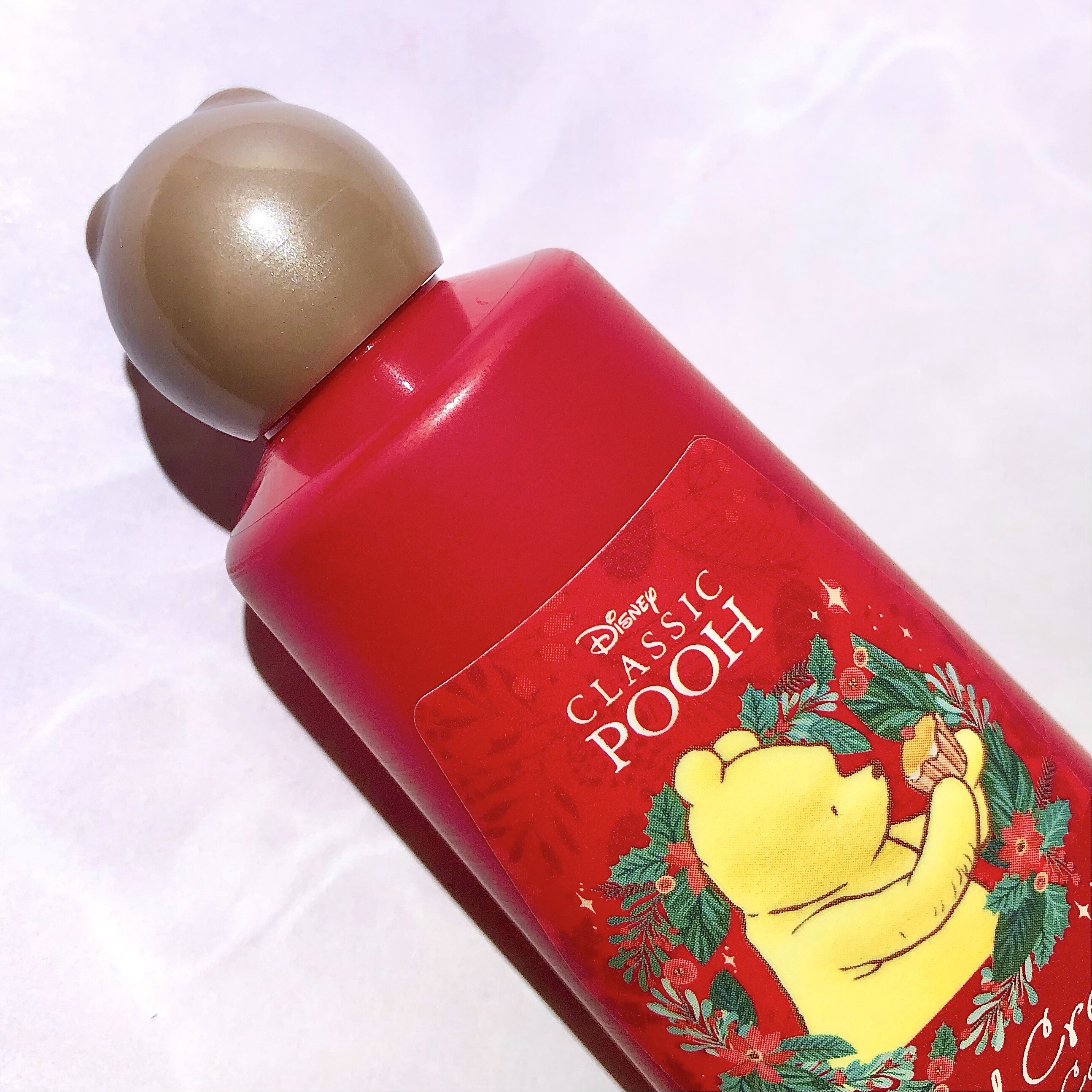 蓋がプーさんの形してる!🍯🧸🌼🐝🍯🐻 冬にハンドクリームは何個あっても困らないと思うので、プレゼントにも喜ばれるかと😍 すみれと赤い果実の香り🍓 けっこうしっかり香るので使った後は良い気分でいられました🥰
