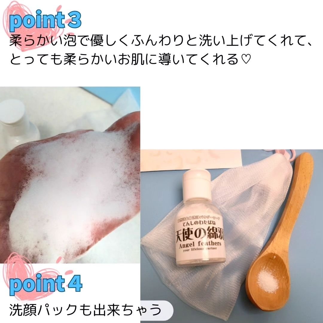 値段が高いのには理由があります❕パウダー状の石鹸です😊✨『天使の綿羽(わたばね)』✨価格12,800円👼【特徴】●肌の常在菌のバランスを整え、真菌(カビ菌)のみを抑制する全身洗浄粉石です。●肌への安全性だけを考えて作り、できるだけ刺激のない優...