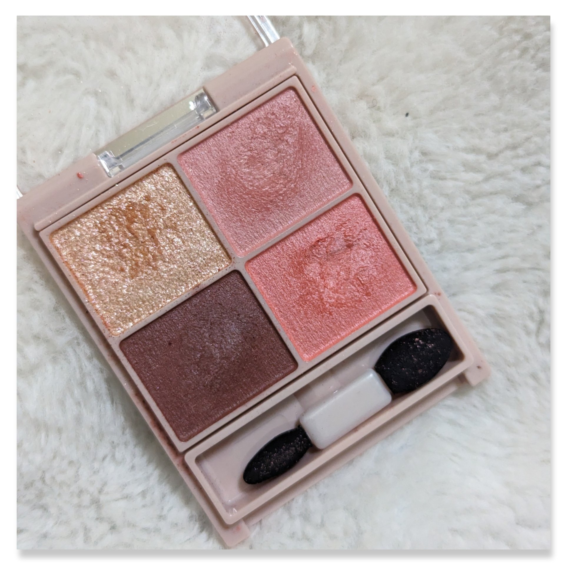 - シルキースフレアイズの姉妹品♡ 肌に溶け込むような透けマットシャドウ 透け感のある柔らかい仕上がりになるマット3色と、透け発色の繊細ラメ1色のパレットシャドウ♡ 完全マットアイや、ラメ×マットアイなど、メイクのパターンを楽しみましょう!