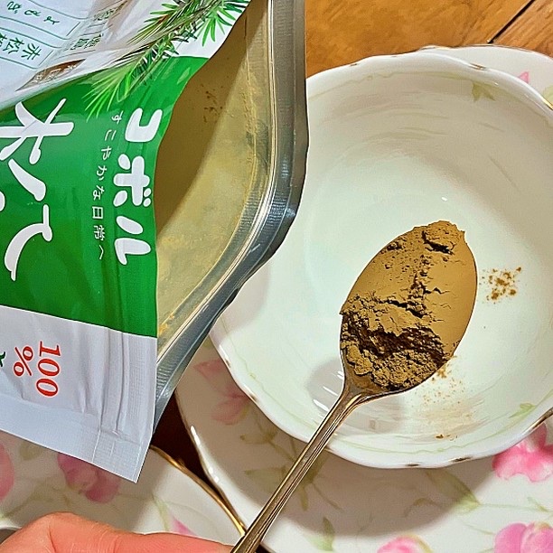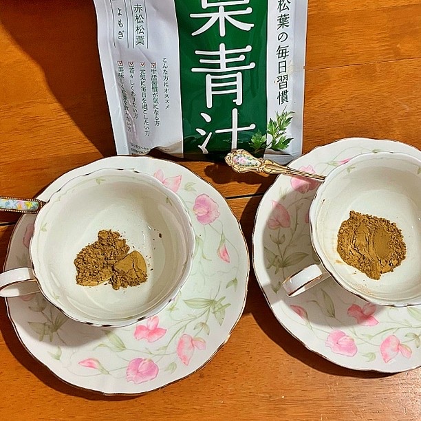 粉末なので、丸ごとそのまま食べることもできるそうです。 サッと溶け、口当たりがよくビックリ。 感想としては香りはよもぎ、味は松葉でした。 次に普通にお湯を注いでお茶として飲んでみたら全然苦くなくてビックリ! 大地の王様とよばれる赤松松葉は24種類のアミノ酸、ケルセチン、クロロフィル、フラボノイド、ビタミンA、C、Kハーブの女王とよばれるよもぎはクロロフィル、フラボノイド、ミネラル、カロチン、ビタミンA、C、Kが含まれていて女性が美しく健康な生活を送るための成分がたっぷり。 松葉青汁を使った白玉だんごのレシピが同封されていました。美味しそう😆