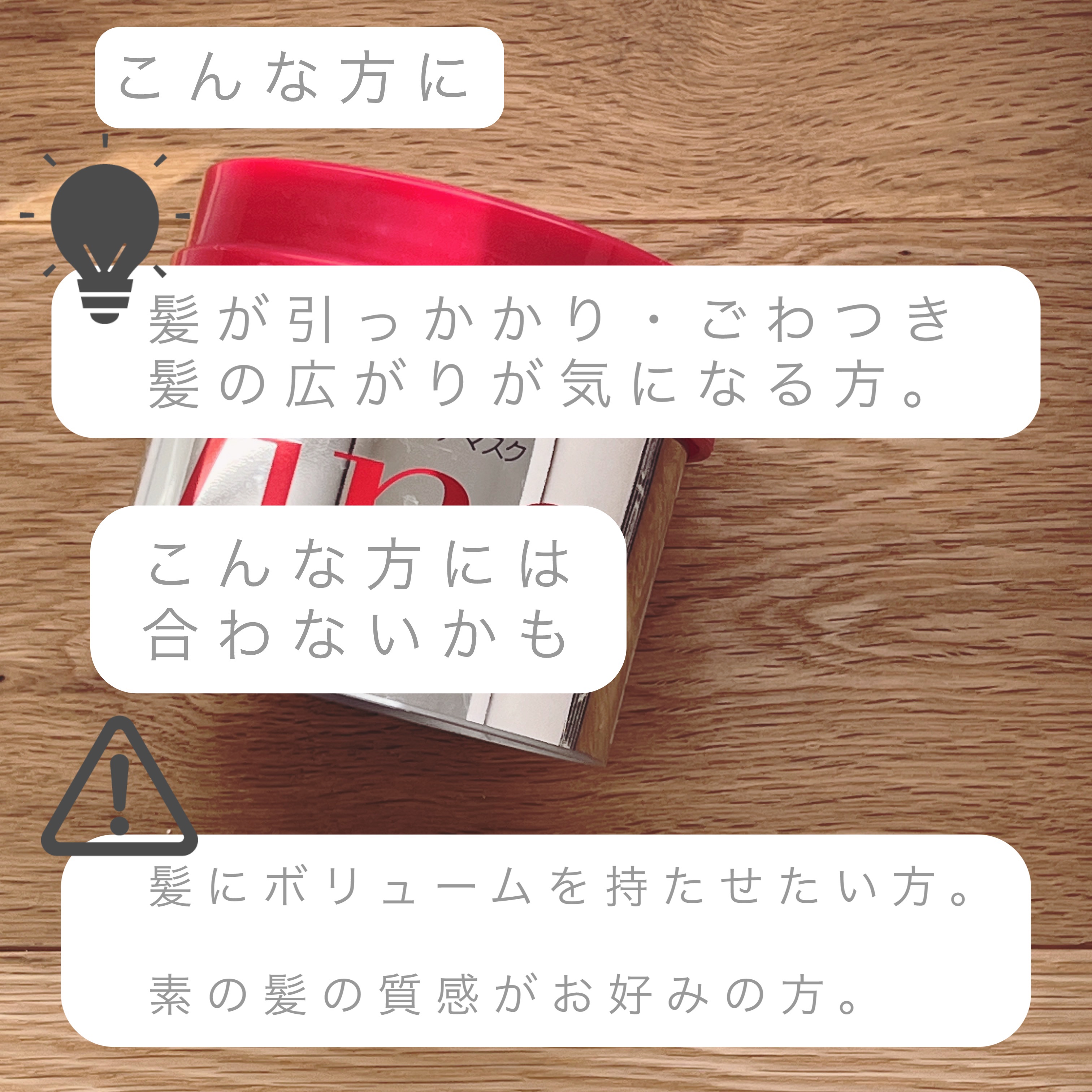 | ヘアケア・スタイリングランキング第42位 | ねっとりした濃厚なテクスチャ ダメージ気にしてる人にオススメ しっとり艶感ある髪になる | 詳細を見る | |