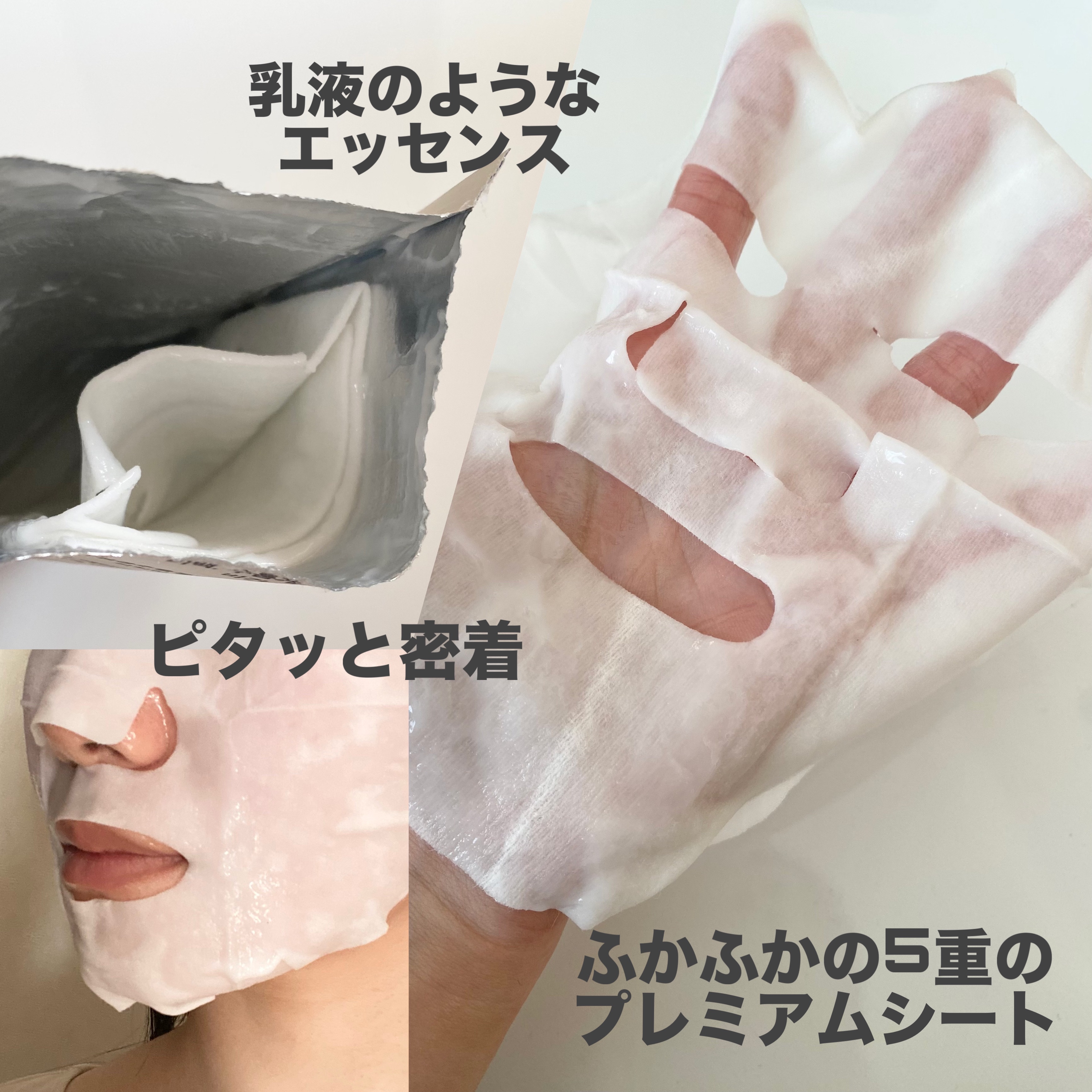 ナイアシンアミド50,000ppm・グルタチオン・7種のビタミン配合 この2つはじつはリピしてて大好き🥰 ベタつかなくて使いやすいし シートがふかふかのお布団みたい🫧 5重のシートなんだって🫧美容液をたっぷり💕