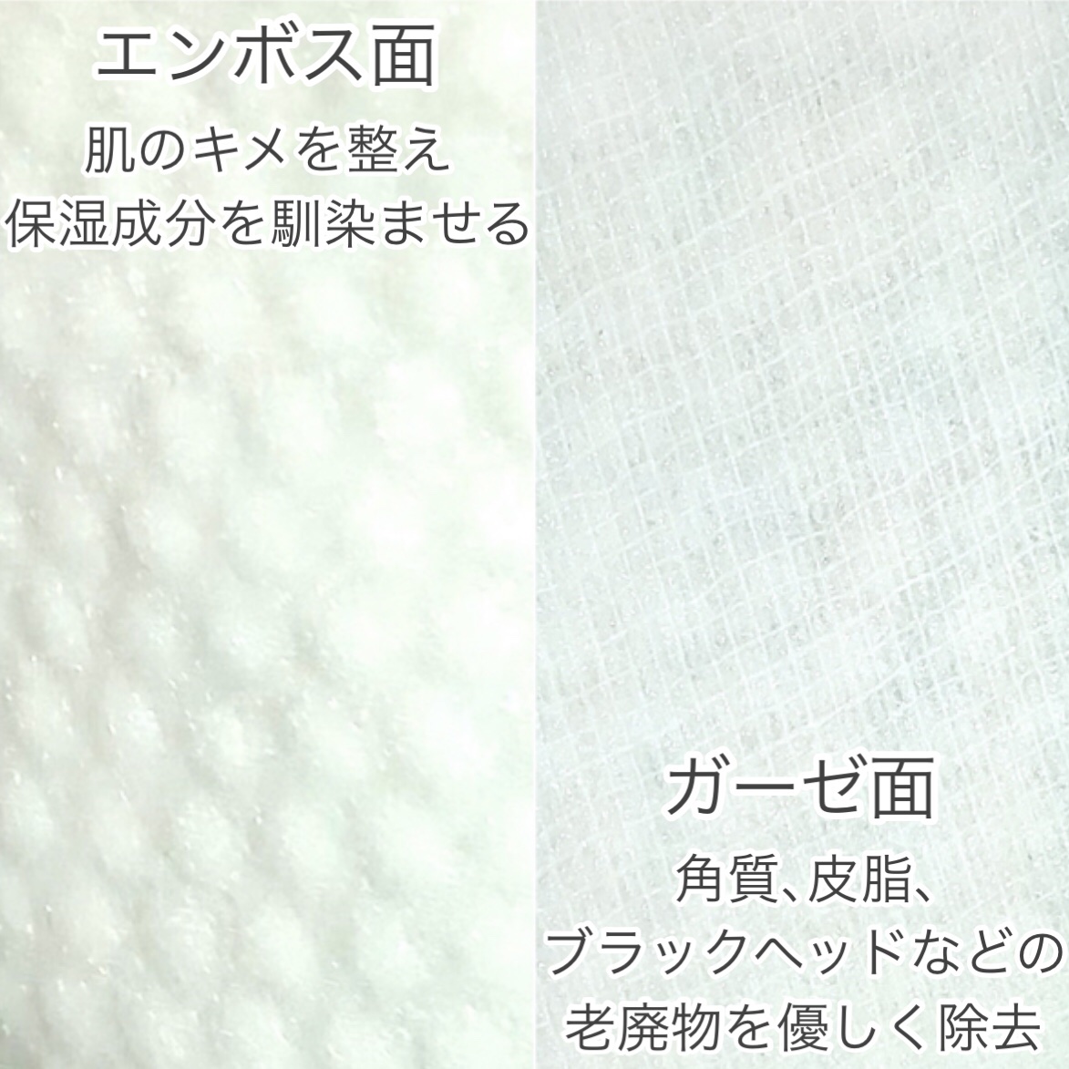 肌にゆっくりと浸透するピーリング成分であるグルコノラクトン(PHA)を配合した低刺激の角質ケアパッドです。 パッドはフワフワ柔らかめです。古い角質&皮脂ケアに特化したエンボス面と水分補給やパックに適したなめらかな面と、両面使えます。 柑橘っぽい香りが加わった爽やかなフローラル系の香りがします。