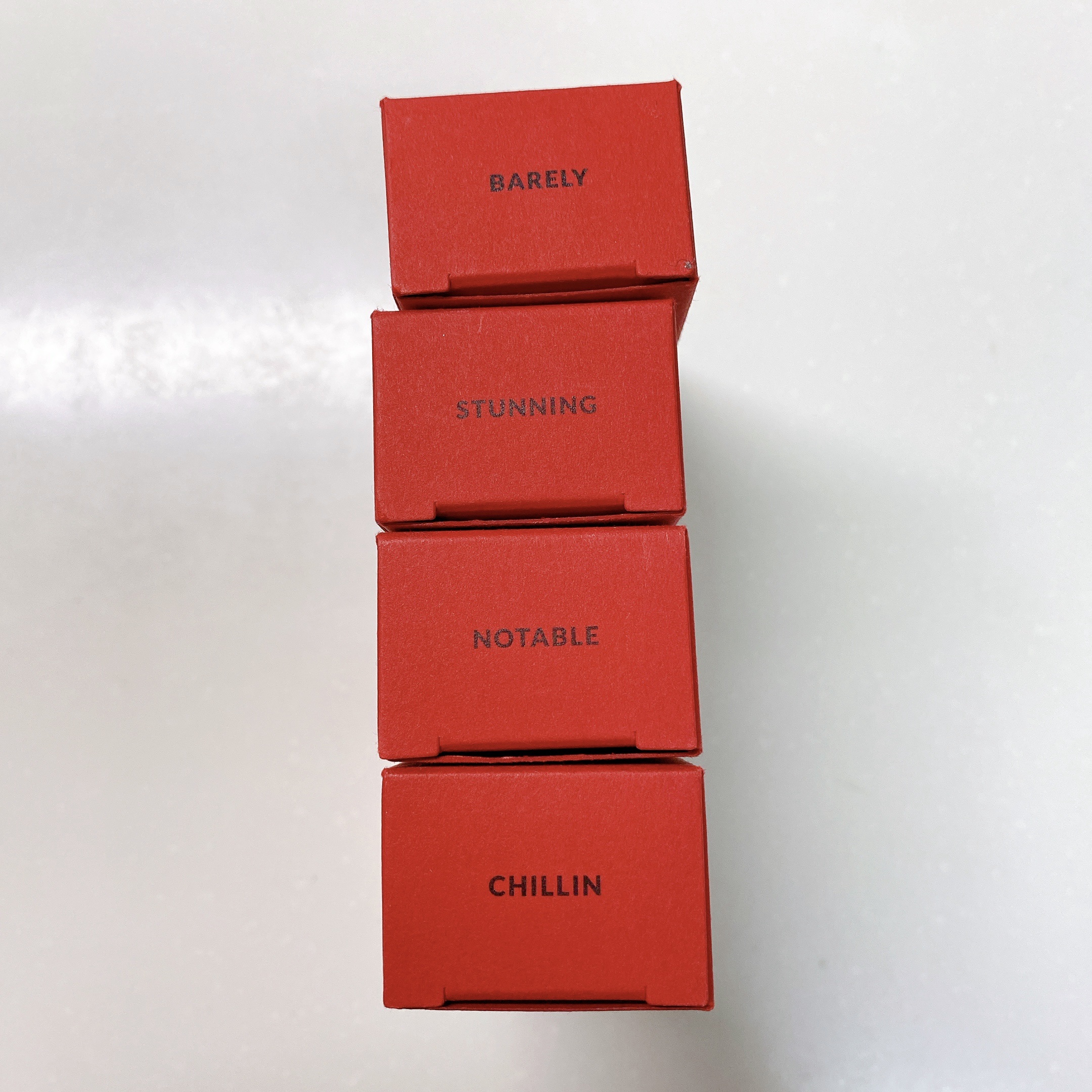 - <001 Barely> ジメチコン、シクロペンタシロキサン、(ジメチコン/ビニルジメチコン)クロスポリマー、ジメチコンクロスポリマー、セテアリルジメチコンクロスポリマー、トリイソステアリン酸ポリグリセリル-2、合成フルオロフロゴパイト、ジステアリルジモニウムクロリド、カオリン、(HDI/トリメチロールヘキシルラクトン)クロスポリマー、酸化チタン、メタクリル酸メチルクロスポリマー、シリカ、1,2-ヘキサンジオール、酸化鉄、⻩4、⾹料、カニナバラ果実油、エチルヘキシルグリセリン、トコフェロール、リンゴ酸ジイソステアリル、⾚202、⽔、メチルプロパンジオール、バクホウシアシトリオドラ葉エキス、タチジャコウソウエキス <002 Sequence> ジメチコン、シクロペンタシロキサン、(ジメチコン/ビニルジメチコン)クロスポリマー、ジメチコンクロスポリマー、セテアリルジメチコンクロスポリマー、トリイソステアリン酸ポリグリセリル-2、合成フルオロフロゴパイト、ジステアリルジモニウムクロリド、カオリン、(HDI/トリメチロールヘキシルラクトン)クロスポリマー、酸化チタン、メタクリル酸メチルクロスポリマー、シリカ、1,2-ヘキサンジオール、酸化鉄、⻩4、⾚202、⾹料、リンゴ酸ジイソステアリル、カニナバラ果実油、エチルヘキシルグリセリン、トコフェロール、⽔、メチルプロパンジオール、バクホウシアシトリオドラ葉エキス、タチジャコウソウエキス <003 Stranger> ジメチコン、シクロペンタシロキサン、(ジメチコン/ビニルジメチコン)クロスポリマー、ジメチコンクロスポリマー、セテアリルジメチコンクロスポリマー、トリイソステアリン酸ポリグリセリル-2、合成フルオロフロゴパイト、ジステアリルジモニウムクロリド、カオリン、(HDI/トリメチロールヘキシルラクトン)クロスポリマー、酸化チタン、メタクリル酸メチルクロスポリマー、酸化鉄、シリカ、1,2-ヘキサンジオール、⾚202、リンゴ酸ジイソステアリル、⾹料、カニナバラ果実油、エチルヘキシルグリセリン、トコフェロール、⽔、メチルプロパンジオール、バクホウシアシトリオドラ葉エキス、タチジャコウソウエキス <004 Affection> ジメチコン、シクロペンタシロキサン、(ジメチコン/ビニルジメチコン)クロスポリマー、ジメチコンクロスポリマー、セテアリルジメチコンクロスポリマー、トリイソステアリン酸ポリグリセリル-2、合成フルオロフロゴパイト、ジステアリルジモニウムクロリド、カオリン、(HDI/トリメチロールヘキシルラクトン)クロスポリマー、メタクリル酸メチルクロスポリマー、酸化チタン、シリカ、酸化鉄、1,2-ヘキサンジオール、⻩5、⾚202、⾹料、リンゴ酸ジイソステアリル、カニナバラ果実油、エチルヘキシルグリセリン、トコフェロール、⽔、メチルプロパンジオール、バクホウシアシトリオドラ葉エキス、タチジャコウソウエキス <005 Stunning> ジメチコン、シクロペンタシロキサン、(ジメチコン/ビニルジメチコン)クロスポリマー、ジメチコンクロスポリマー、セテアリルジメチコンクロスポリマー、トリイソステアリン酸ポリグリセリル-2、合成フルオロフロゴパイト、ジステアリルジモニウムクロリド、カオリン、(HDI/トリメチロールヘキシルラクトン)クロスポリマー、メタクリル酸メチルクロスポリマー、酸化チタン、⻩5、シリカ、1,2-ヘキサンジオール、赤104(1)、⾚202、酸化鉄、リンゴ酸ジイソステアリル、⾚201、⾹料、カニナバラ果実油、エチルヘキシルグリセリン、トコフェロール、⽔、メチルプロパンジオール、バクホウシアシトリオドラ葉エキス、タチジャコウソウエキス <006 Notable> ジメチコン、シクロペンタシロキサン、(ジメチコン/ビニルジメチコン)クロスポリマー、ジメチコンクロスポリマー、セテアリルジメチコンクロスポリマー、トリイソステアリン酸ポリグリセリル-2、合成フルオロフロゴパイト、ジステアリルジモニウムクロリド、カオリン、(HDI/トリメチロールヘキシルラクトン)クロスポリマー、メタクリル酸メチルクロスポリマー、酸化鉄、⻩5、シリカ、1,2-ヘキサンジオール、酸化チタン、⾚202、⾹料、カニナバラ果実油、エチルヘキシルグリセリン、トコフェロール、リンゴ酸ジイソステアリル、⽔、メチルプロパンジオール、バクホウシアシトリオドラ葉エキス、タチジャコウソウエキス <007 Chillin> ジメチコン、シクロペンタシロキサン、(ジメチコン/ビニルジメチコン)クロスポリマー、ジメチコンクロスポリマー、セテアリルジメチコンクロスポリマー、トリイソステアリン酸ポリグリセリル-2、合成フルオロフロゴパイト、ジステアリルジモニウムクロリド、酸化鉄、カオリン、(HDI/トリメチロールヘキシルラクトン)クロスポリマー、メタクリル酸メチルクロスポリマー、シリカ、1,2-ヘキサンジオール、酸化チタン、⾚202、⾹料、カニナバラ果実油、エチルヘキシルグリセリン、トコフェロール、リンゴ酸ジイソステアリル、⽔、メチルプロパンジオール、バクホウシ