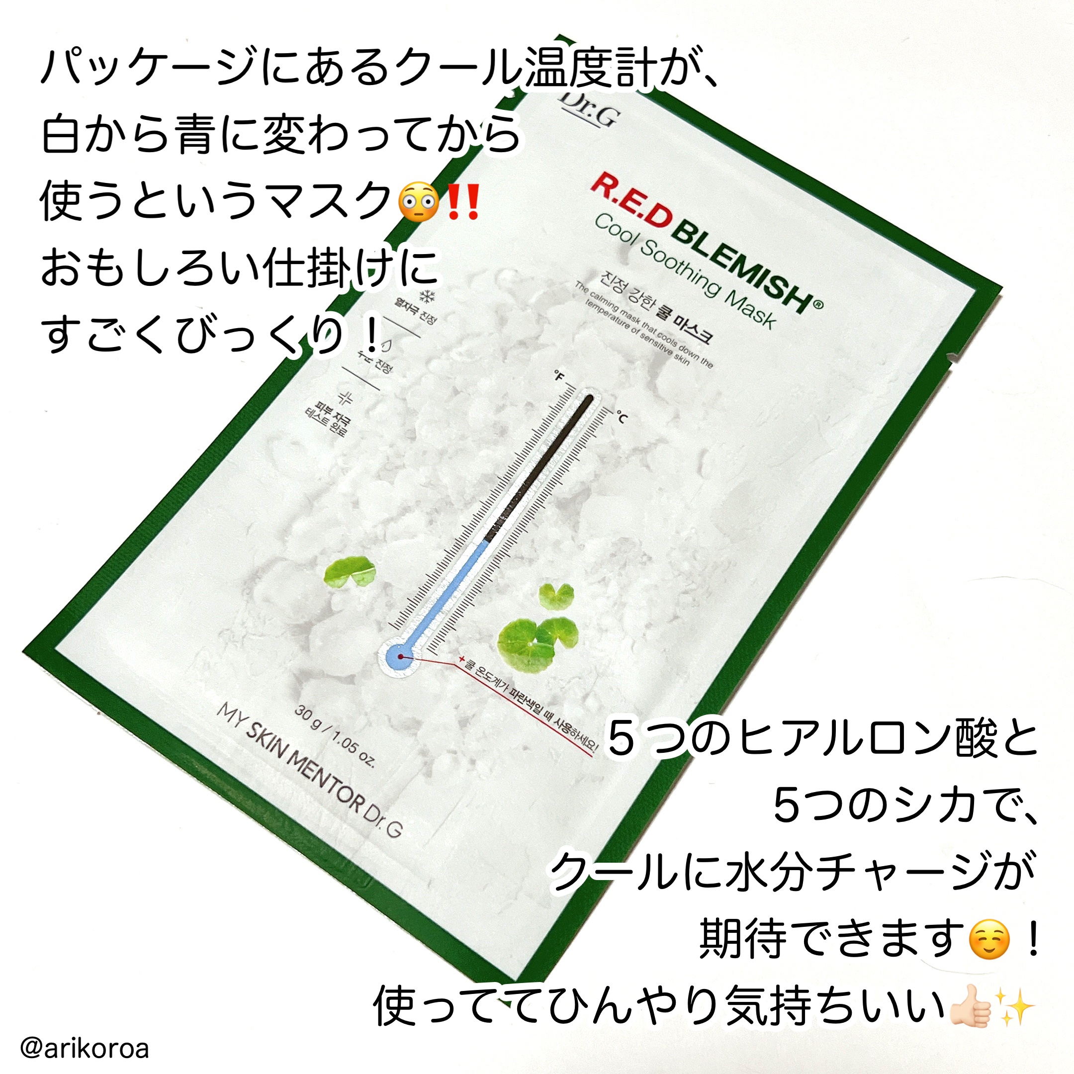 Dr.G@dr.g_official_jp様から商品提供をいただきました🌿Dr.G レッドブレミッシュクールスージングマスク(10枚)独自の植物性水分クーラーでお肌を整えるクールマスク5つのヒアルロン酸と5つのシカ成分が肌トラブルなども鎮静し...