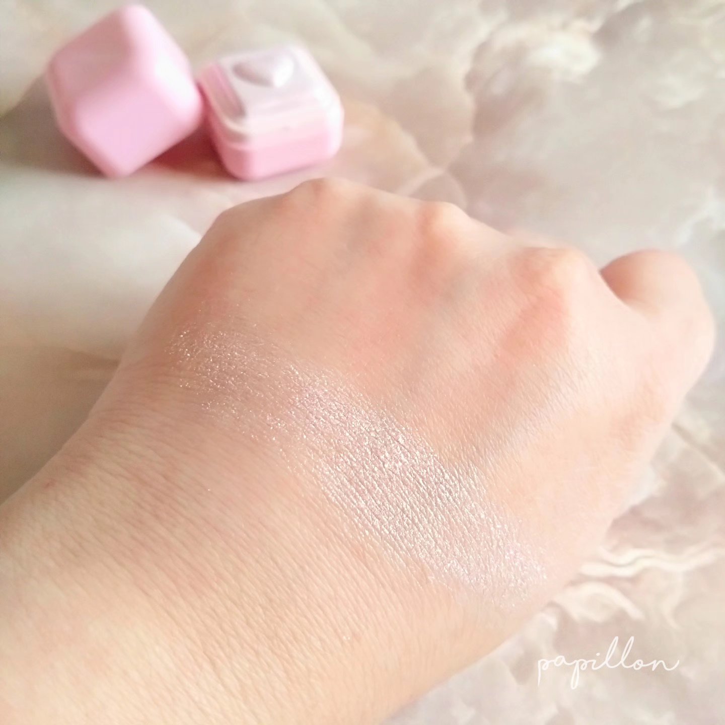ポンポン独歩的に浮かび上がるホワイトピンク艶。チークからパールまで輝くツヤ血色パワー。 サッと塗るだけで触れた瞬間輝くツヤ。 妖精フィルターをかけたような隠れた立体ツヤ演出。