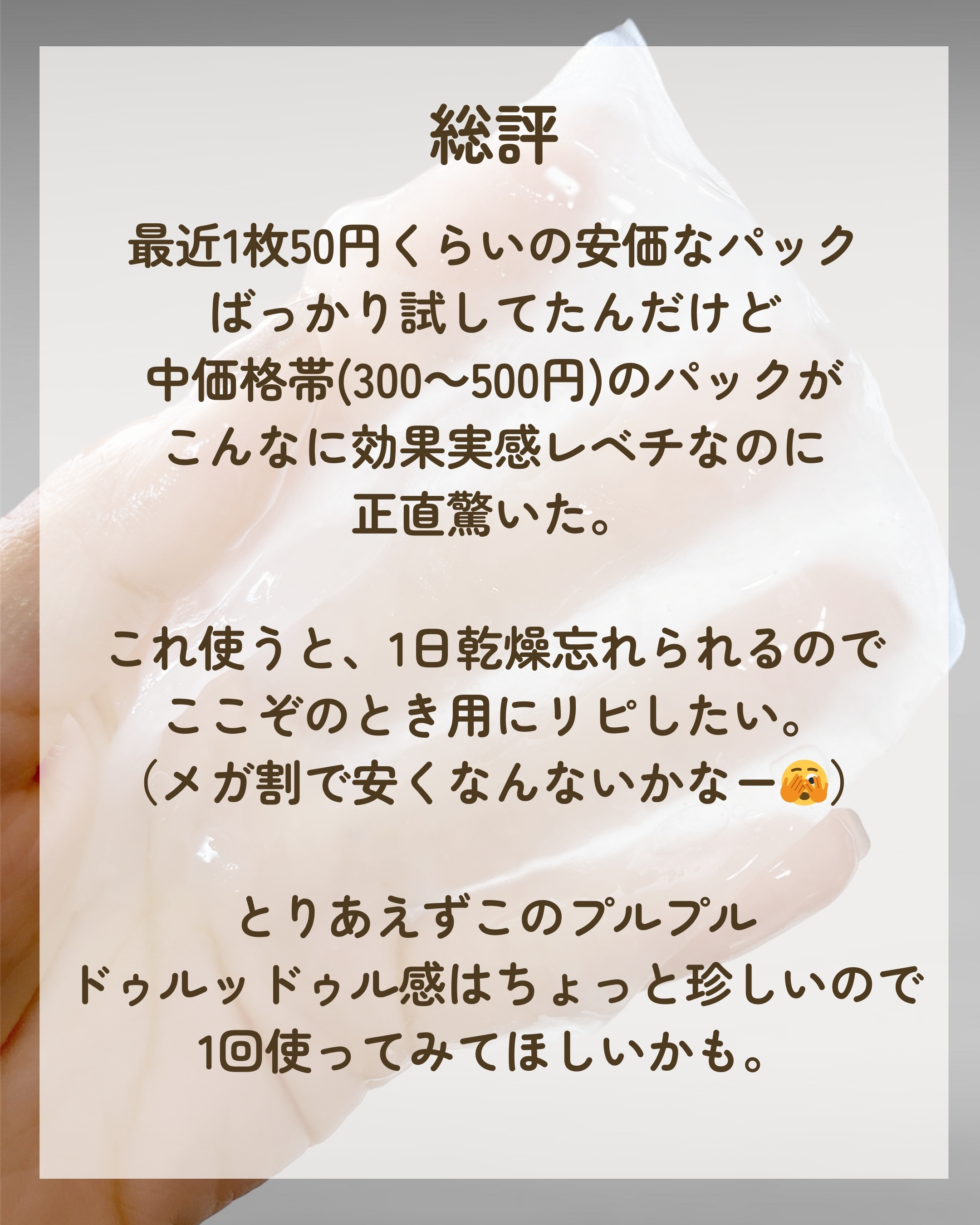 | スキンケアランキング第19位 | 水分をたっぷり含んだ透明なウォーターゲルシートがぷるぷる、美容液ひたひたですごい👀 ˎˊ˗ | 詳細を見る | ||